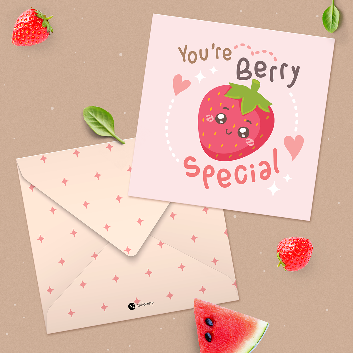Thiệp FRUITY của SDstationery mang hình minh họa đáng yêu cùng những thông điệp ngọt ngào “hương vị trái cây” với cách chơi chữ tiếng Anh vui nhộn. Thiệp sẽ giúp bạn đốn tim crush trong nháy mắt bởi độ cute dí dỏm của nó.
