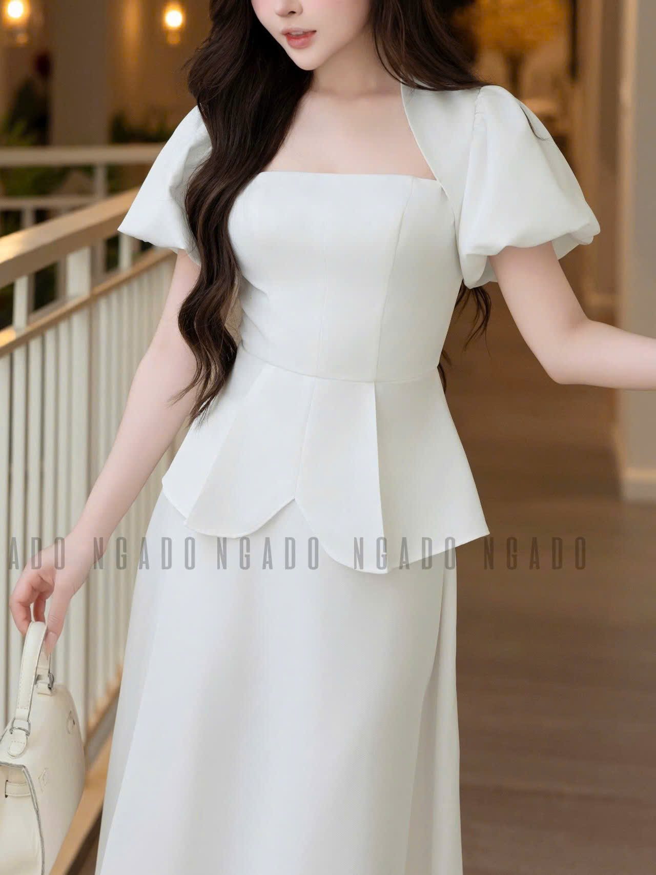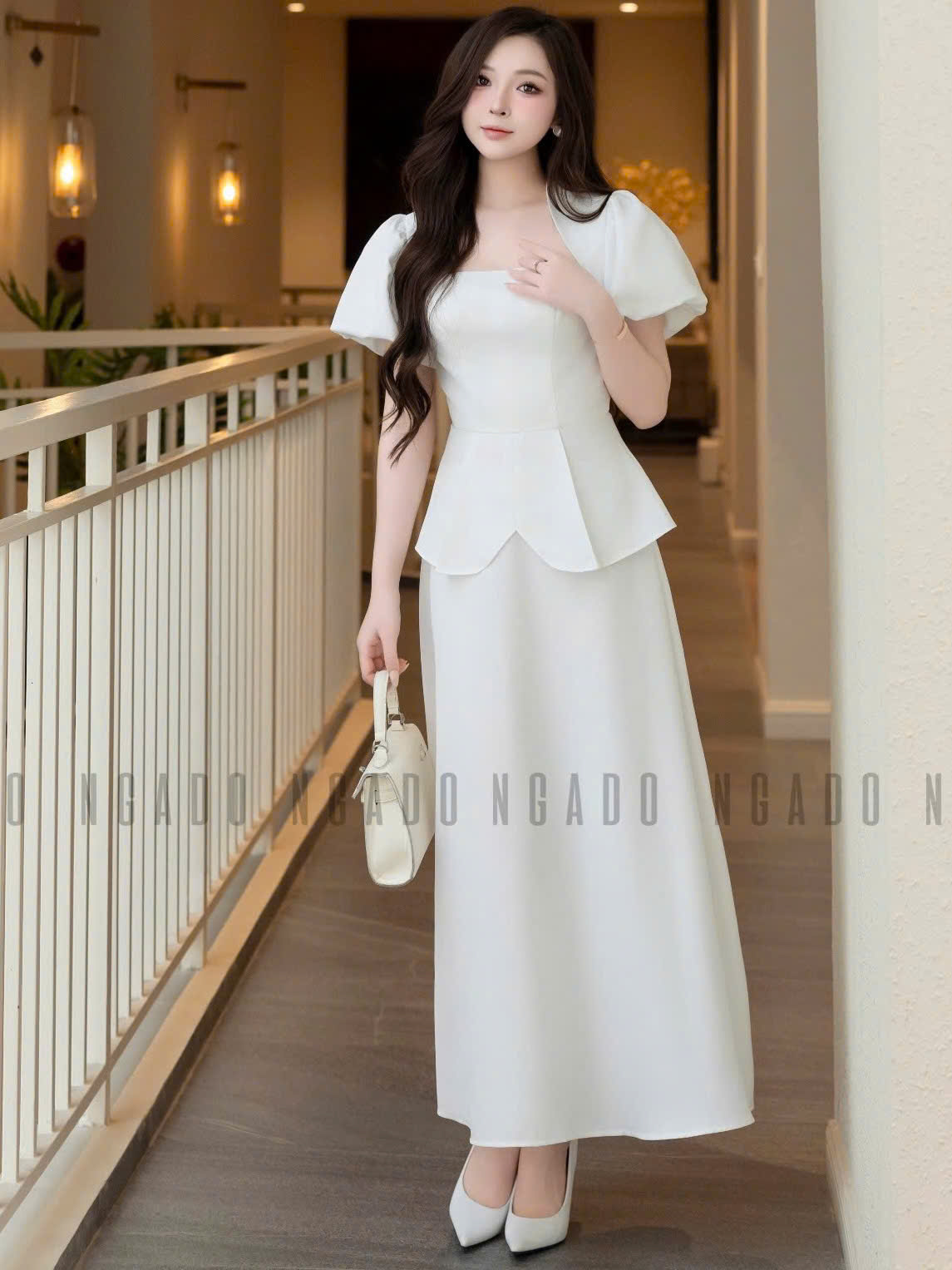 ✨Set áo váy trắng tay phồng NGADO , set áo váy dài , set áo váy công sở , dự tiệc