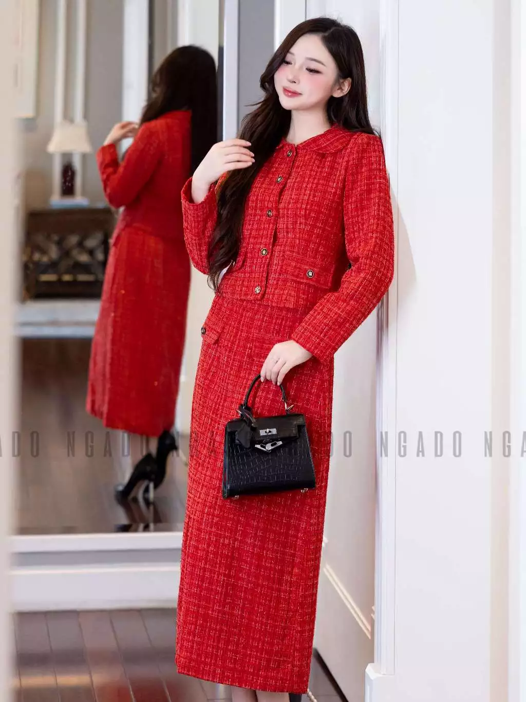 ✨Set áo váy tweed đỏ NGADO , set áo kèm chân váy dáng dài
