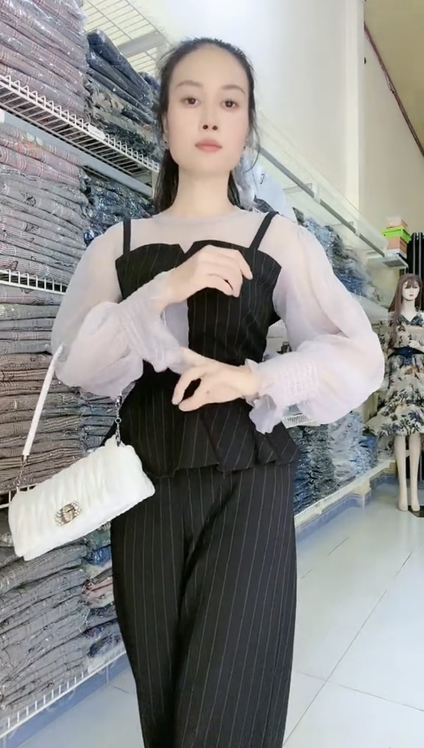 ✨Set áo yếm và quần kẻ sọc Myqlothing cao cấp.