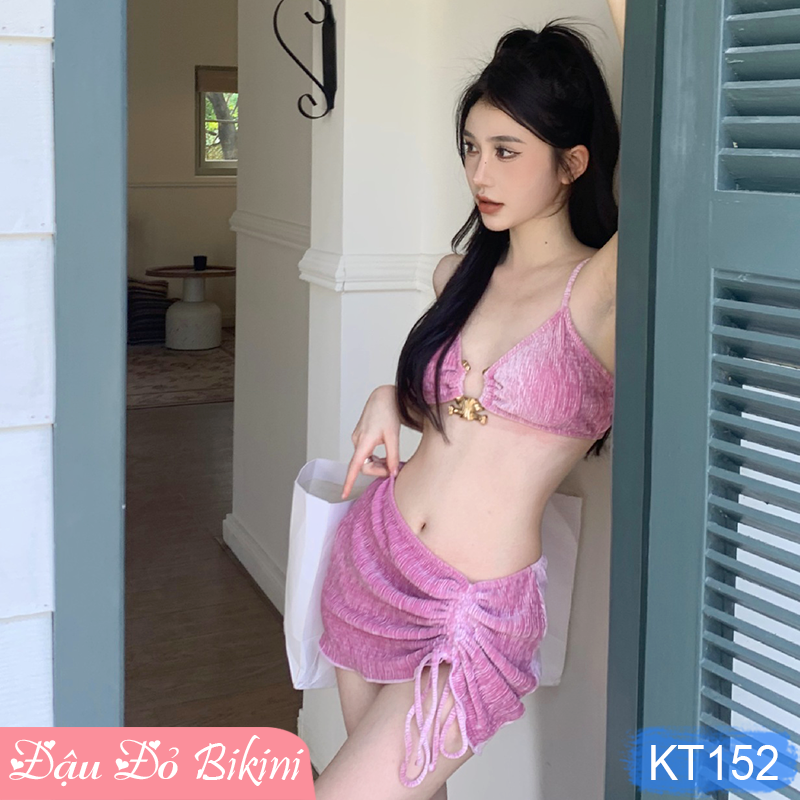 ✨Set bikini nữ 3 chi tiết sexy, bộ áo tắm 2 mảnh kèm quần quây gợi cảm, phong cách Âu Mỹ trẻ trung tôn dáng thon gọn quyến rũ | KT152