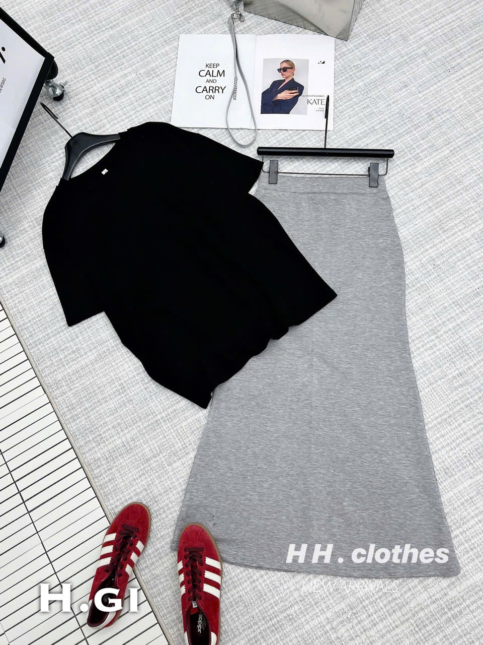 ღ THÔNG TIN SẢN PHẨM: Tên sản phẩm: Set áo váy đen chân váy tơ xám Chất liệu: Chất gân ý - voan tơ Chi tiết sản phẩm: không lót Thông