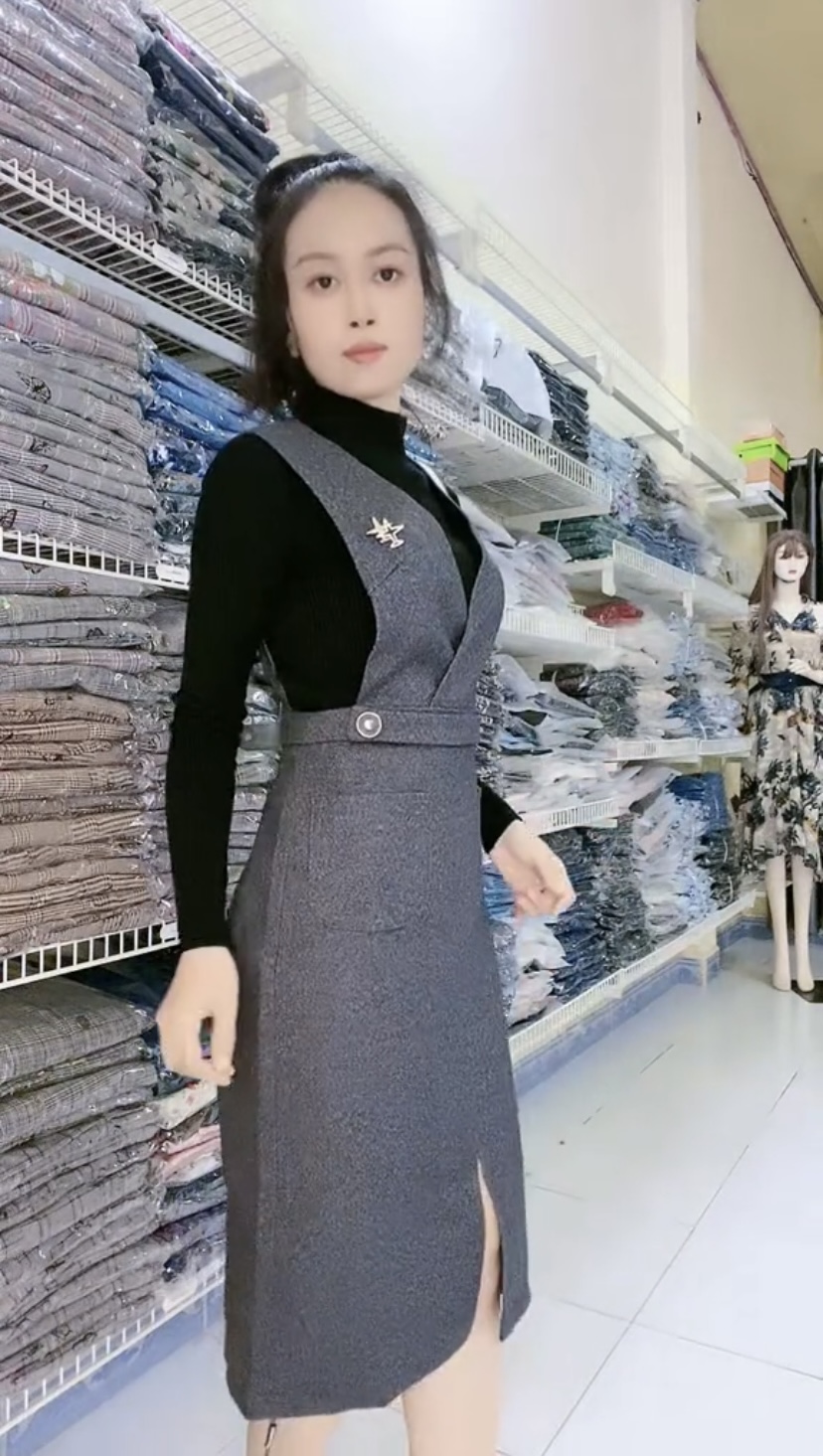 Set đầm yếm kèm áo thun cao cấp Mã: DLZG019 Màu: Đen + Nâu coffee Chất liệu: Spandex, polyester Số đo vòng1/vòng2(cm): free/ 70 Dây kéo bên hông