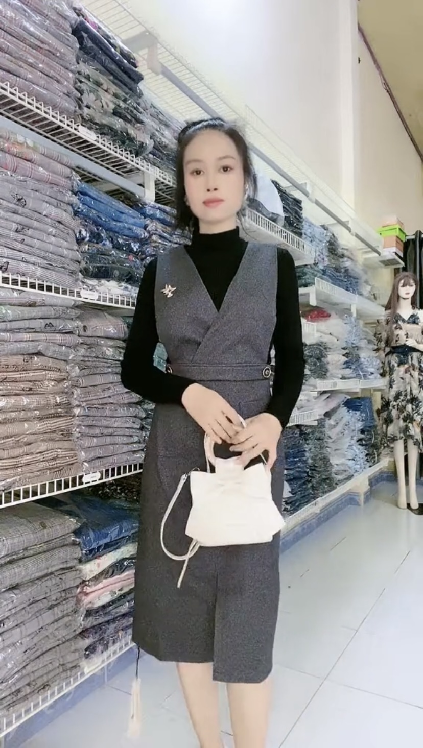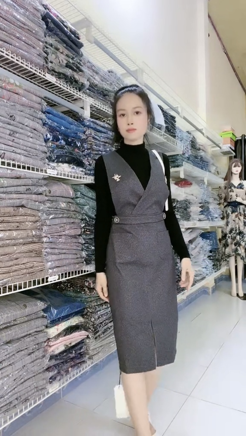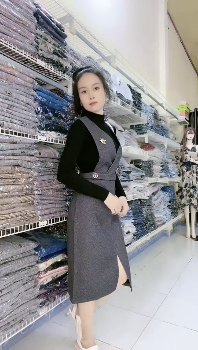 ✨Set đầm yếm kèm áo dệt kim thu đông cao cấp Myqlothing.