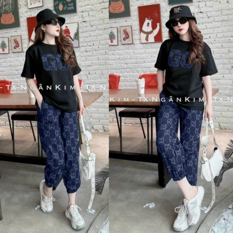 ✨Sét đồ bộ nữ bigsize form rộng thêu chữ GC, sét bộ đồ mặc ở nhà siêu xinh