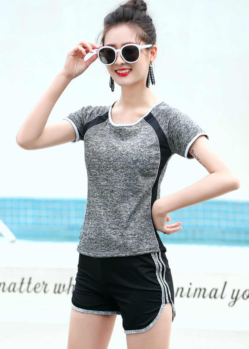 - Set đồ bơi 2 mảnh: Quần Bơi dạng short và Áo Bơi có sẵn mút ngực