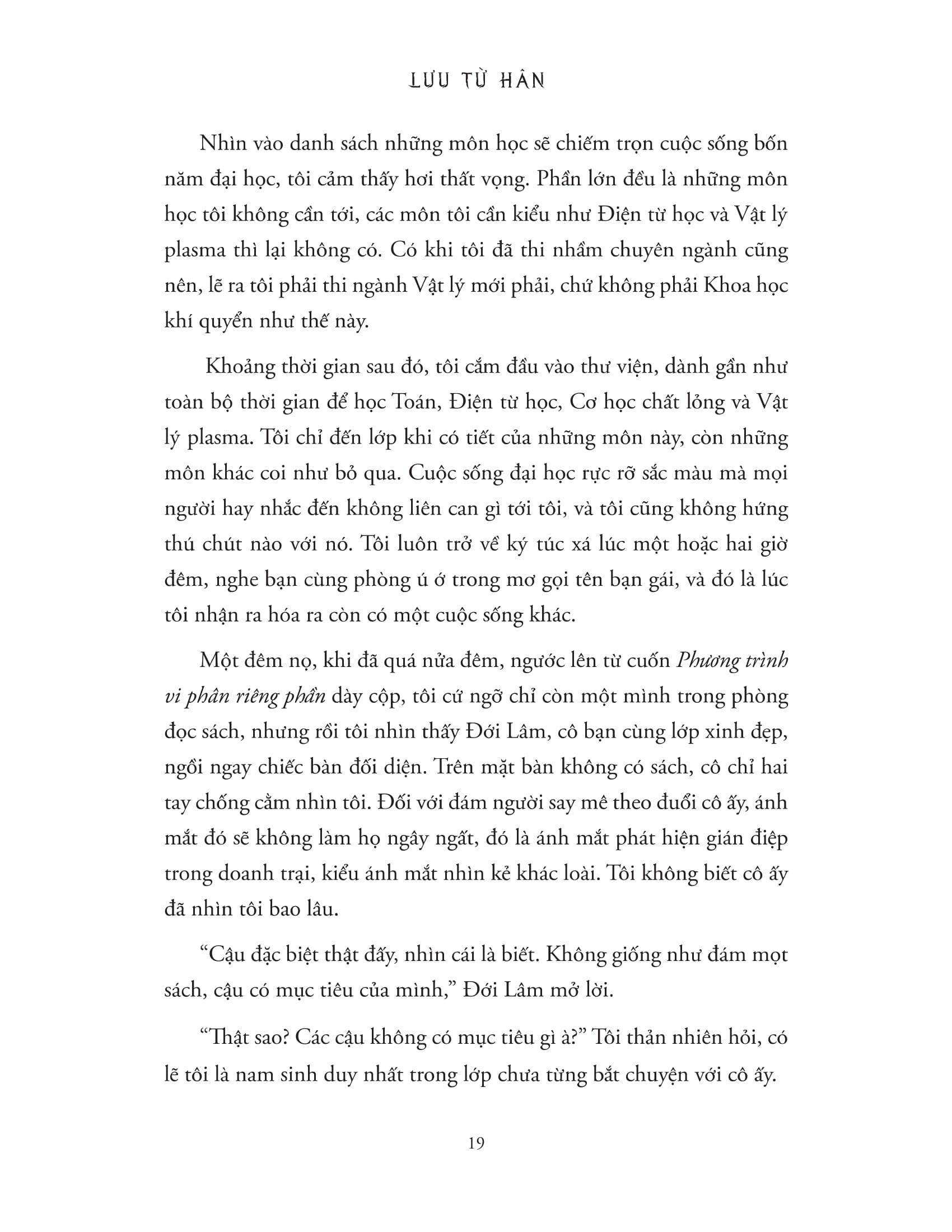 Lưu Từ Hân, sinh năm 1963, người Dương Tuyền, Sơn Tây, là công trình sư cao cấp, một trong những tác giả đại biểu cho dòng tiểu thuyết khoa học viễn tưởng Trung Quốc. Tác phẩm tiêu biểu: Kỷ nguyên sao băng - Sét hòn - Tam thể, trong đó Sét hòn sắp được chuyển thể thành phim.