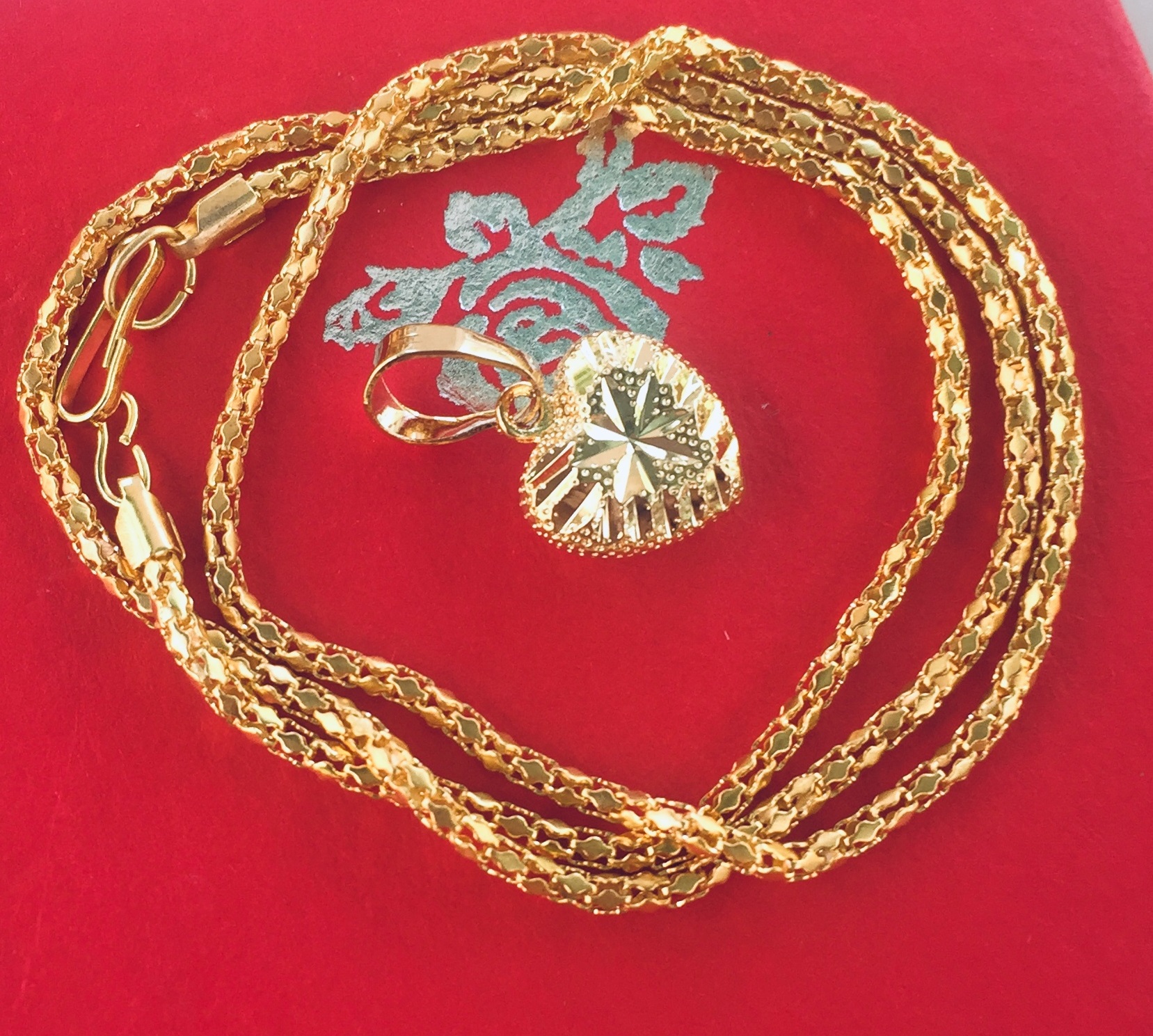 ✨Set Mặt Dây Chuyền Mạ Vàng 18K Đúc Hình Trái Tim Kim Cương, Kèm dây chuyền Mạ vàng 18K và hộp đựng trang sức.