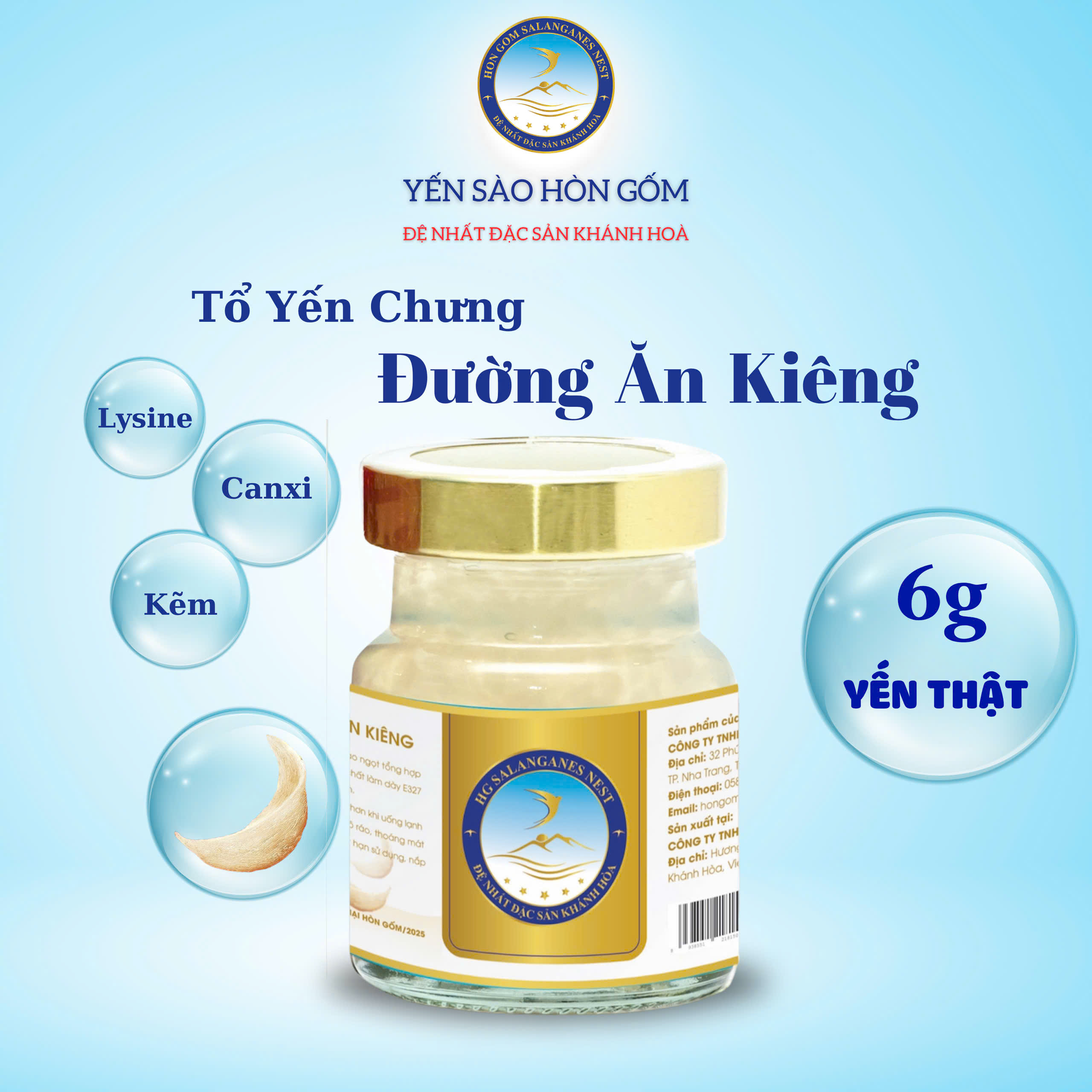 Nước Yến Sào Chưng Đường Ăn Kiêng - Yến Sào Hòn Gốm Khánh Hòa Thương hiệu đạt Top 10 Sao Vàng Thương Hiệu Quốc Gia 2024 Được chiết xuất từ 6g yến tươi nguyên chất,