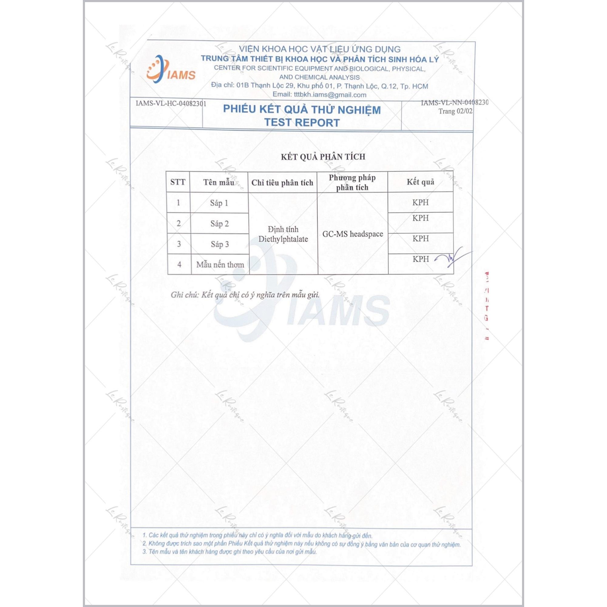 - Thành phần chính: Hỗn hợp sáp dừa, sáp ong, sáp đậu nành nguyên chất và tinh dầu.