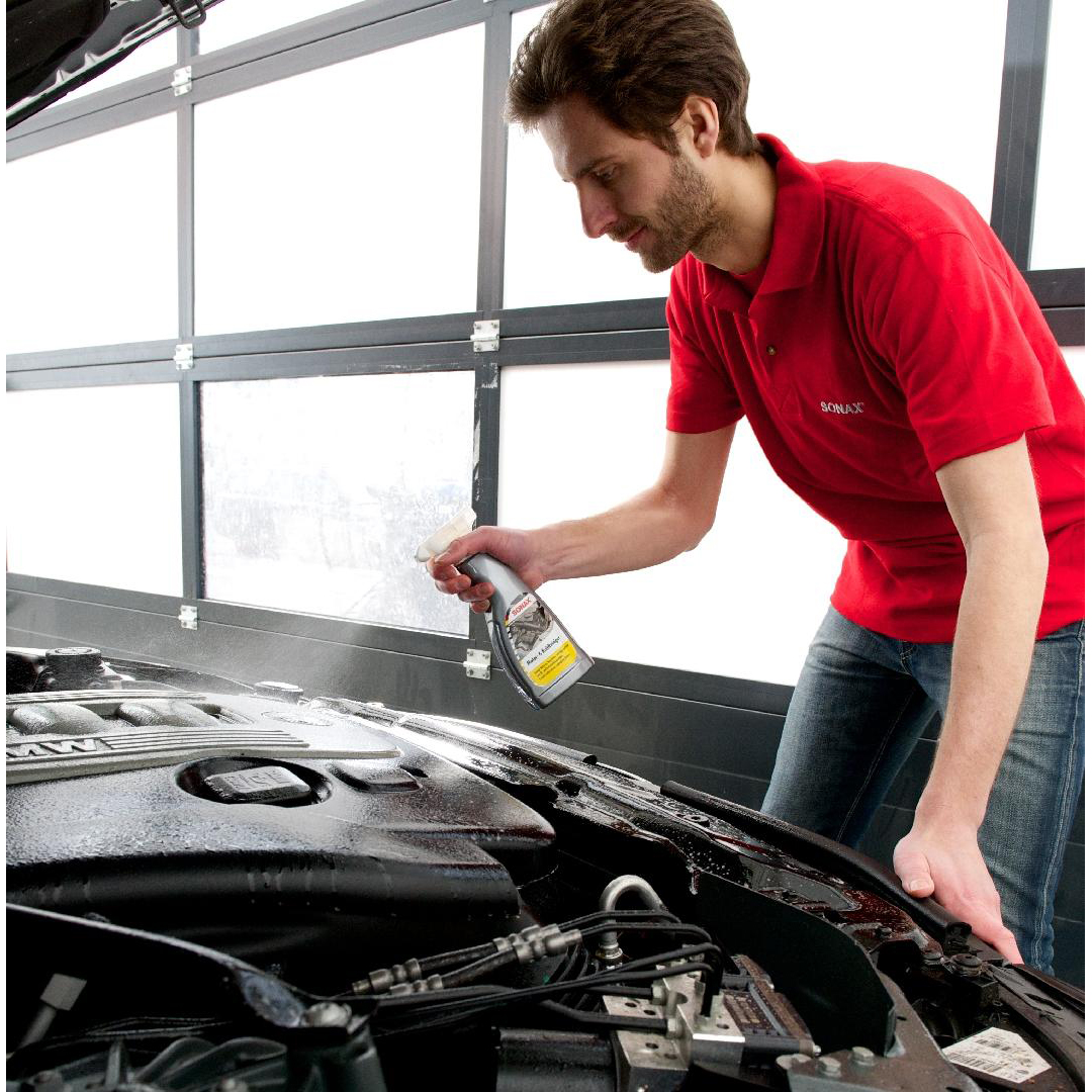 - Dung dịch vệ sinh khoang máy ô tô Sonax, tác dụng làm sạch hiệu quả vết dầu mỡ, dầu thải, bụi than và bụi bẩn bám trên khoang máy động cơ ô tô.