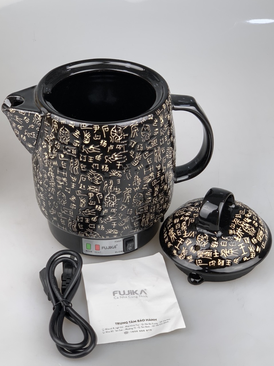 ✨Siêu Sắc Thuốc 3L ,Ấm Sắc Thuốc Tự Động Fujika K5 Lòng Ấm Tráng Men Chịu Nhiệt Cao Màu Đen Họa Tiết Kí Tự- Hàng Chính Hãng