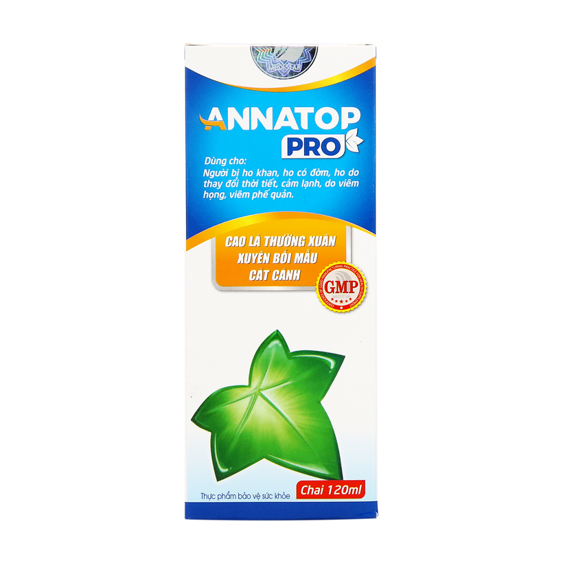 Thành phần hoạt tính: Cao lá thường xuân, chiết xuất cát cánh, chiết xuất xuyên bối mẫu, eucalyptol, chiết xuất ô mai, gừng, húng chanh…