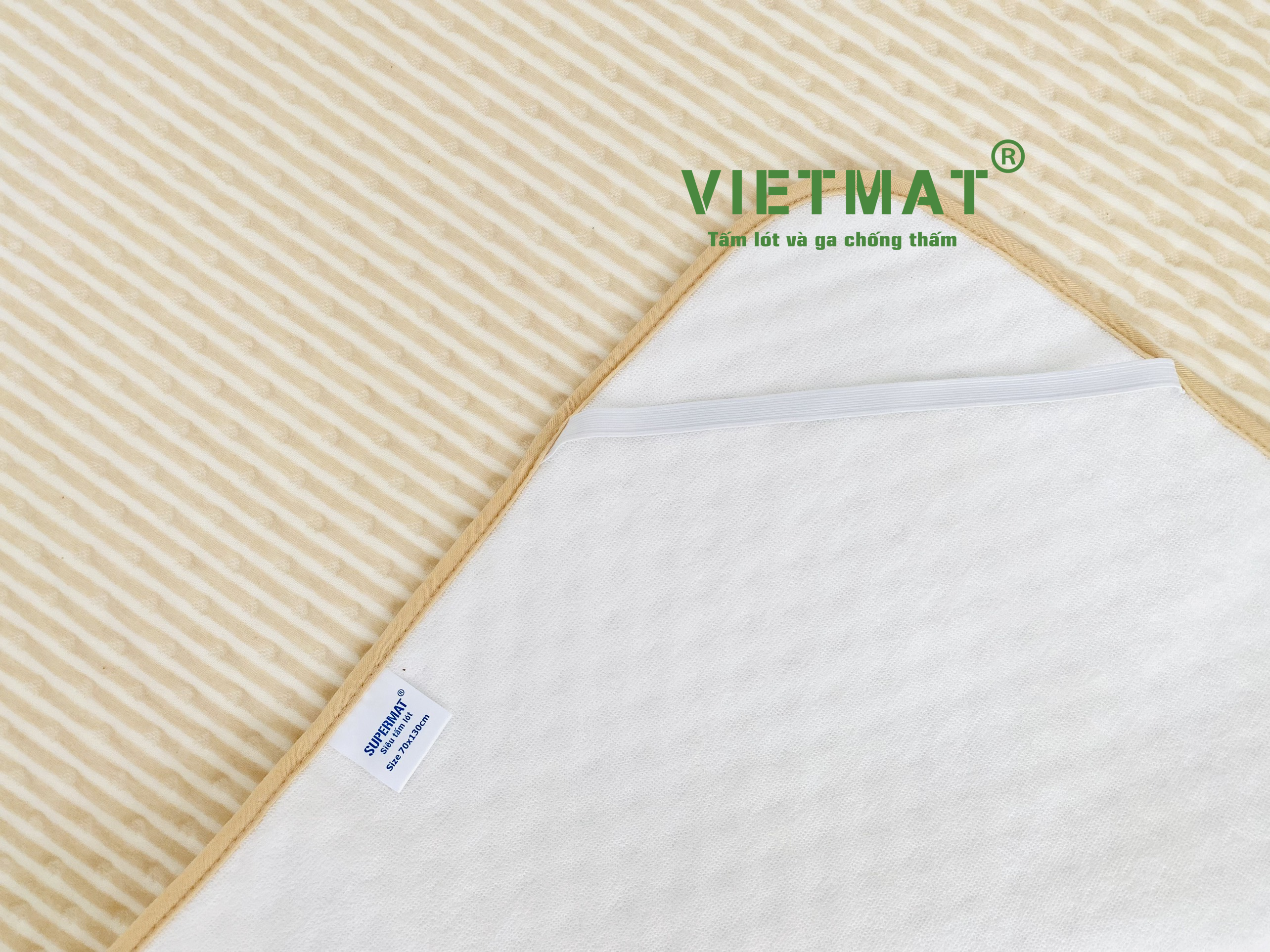- Lớp thứ 3: lớp TPU chống thấm tuyệt đối giúp giường, nệm, nôi, cũi, ghế sofa, xe đẩy, xe hơi…không bị ướt. Lớp này được cán mỏng và kết thành một khối thống nhất trong cấu trúc 4 lớp nên khi dùng không phát ra âm thanh sột soạt, đồng thời bảo đảm thẩm mỹ cho sản phẩm.