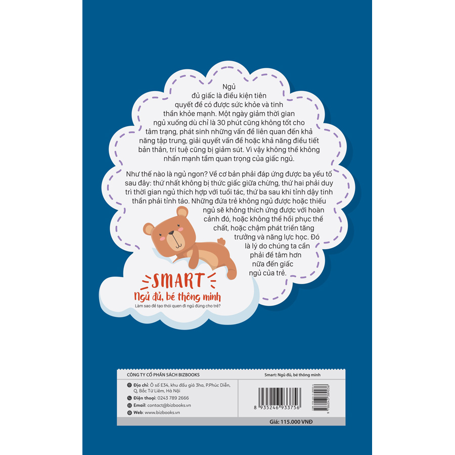 “SMART: Ngủ đủ, bé thông minh - Làm sao để tạo thói quen đi ngủ đúng cho trẻ?” bật mí rất nhiều cách thức hữu hiệu giúp cha mẹ dễ dàng có nguồn kiến thức sâu rộng để dạy bảo đứa trẻ của mình. Chúng ta không thể sống thay cuộc đời của con, nhưng chúng ta có thể cho con biết những thói quen và thái độ cần thiết để con có thể trường thành như một cá thể độc lập, khoẻ mạnh cả về thể chất lẫn tinh thần.