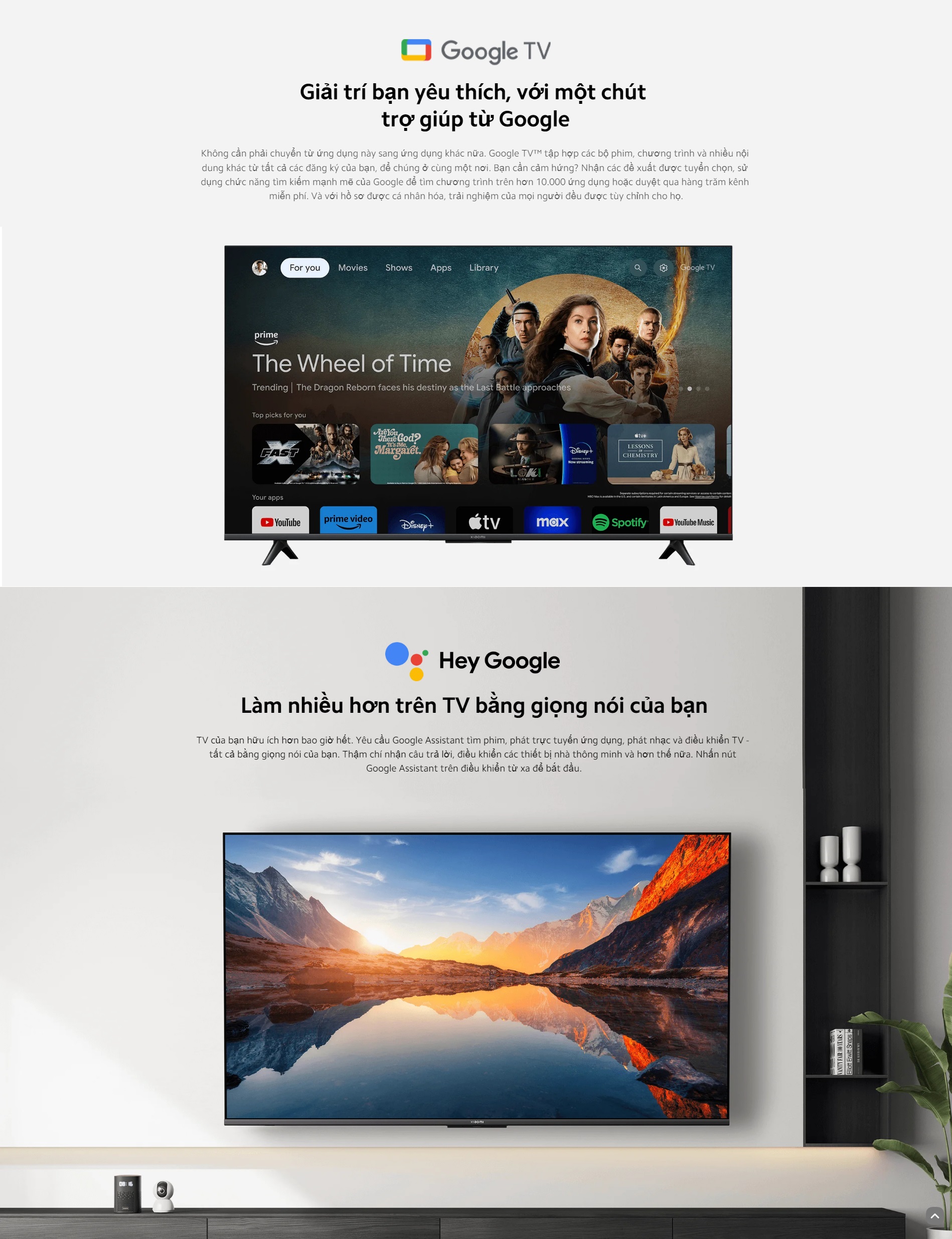 Tivi Xiaomi A43 FUD 2025 tinh tế, hiện đại với thiết kế không viền trải nghiệm hình ảnh không giới hạn, khung kim loại chắc chắn, bền đẹp theo thời gian. Trang bị màn hình 4K FUD 43 inch sắc nét, dải màu rộng kết hợp độ phân giải 3840 × 2160, góc nhìn 178°(H)/178°(V) mang đến hình ảnh chân thực. Công nghệ âm thanh Dolby Audio, DTS-X và DTS Virtual:X tạo nên âm thanh sống động, Google TV cung cấp kho giải trí khổng lồ. Điều khiển bằng giọng nói thông minh, Xiaomi A43 FUD 2025 hứa hẹn nâng tầm trải nghiệm cuộc sống, tận hưởng trọn vẹn bên gia đình.