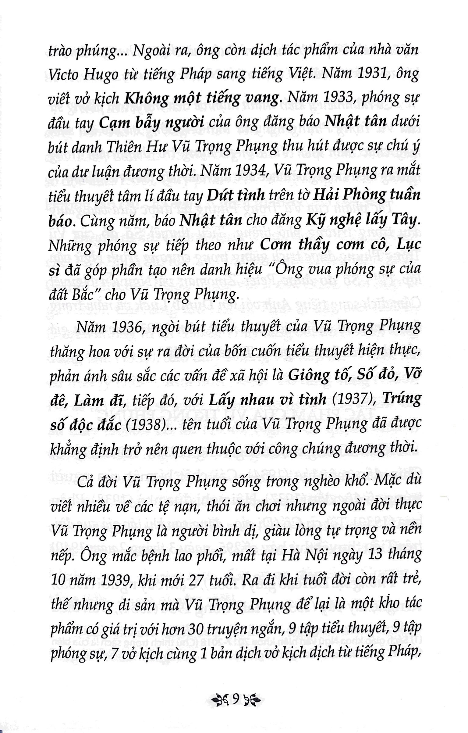 “Nói đến đặc sắc của ngòi bút Vũ Trọng Phụng không thể không nói đến nghệ thuật trào phúng bậc thầy ở nhà văn này. Tài nghệ trào phúng của Vũ Trọng Phụng trước hết kết tinh ở những bức chân dung hí họa độc đáo của ông.” - GIÁO SƯ NGUYỄN ĐĂNG MẠNH