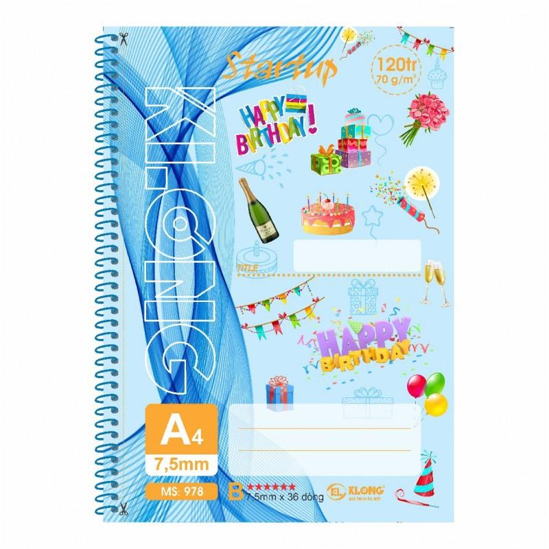 ✨Sổ kẻ ngang lò xo xé đơn Startup KLONG A4 120 trang 70/92; MS: 978