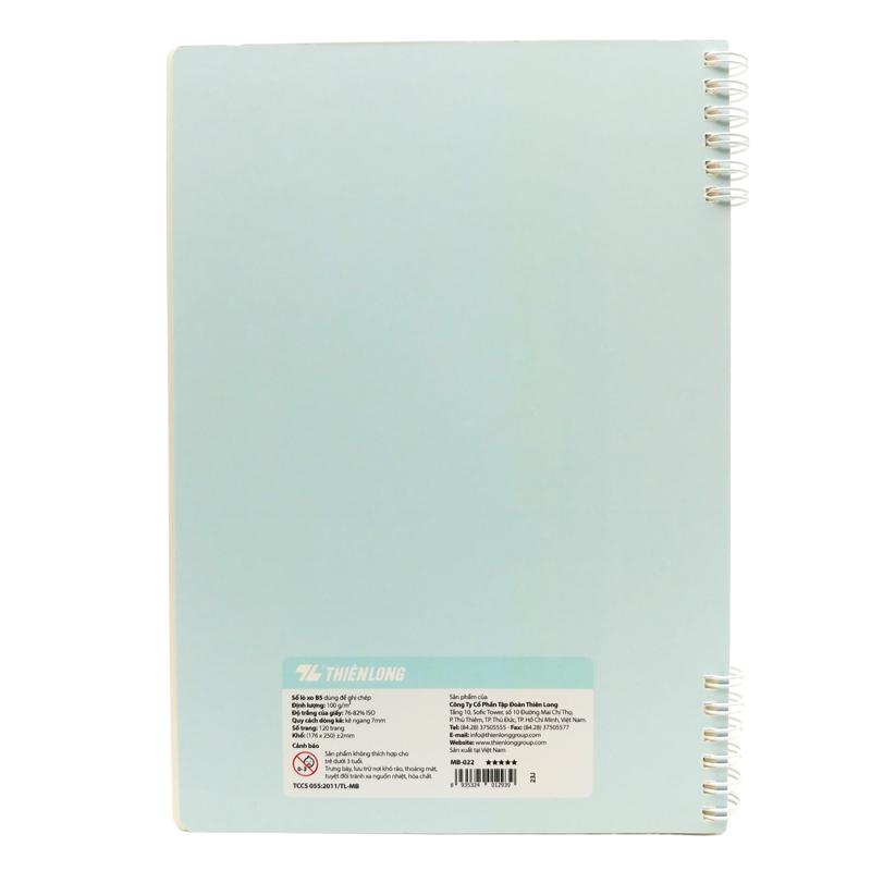 Sổ Lò Xo B5 Kẻ Ngang - 120 Trang 100gsm - Thiên Long MB-022 Sản phẩm có phần ruột bên trong được làm từ giấy mềm mịn, không chứa thành phần hoá chất độc hại,
