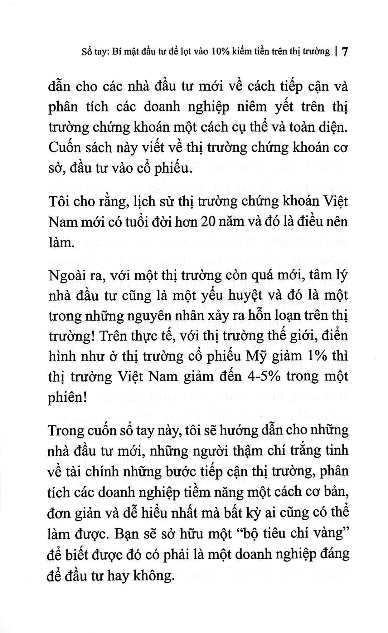 Cuốn sách này được viết ra từ một tác giả, cũng là một nhà đầu tư người Việt Nam, chính vì thế những kiến thức, kỹ năng, kinh nghiệm thực chiến được nêu trong sách là tập trung vào đặc điểm của thị trường chứng khoán Việt Nam, với những kinh nghiệm quý báu được đúc kết qua nhiều chu kỳ của thị trường