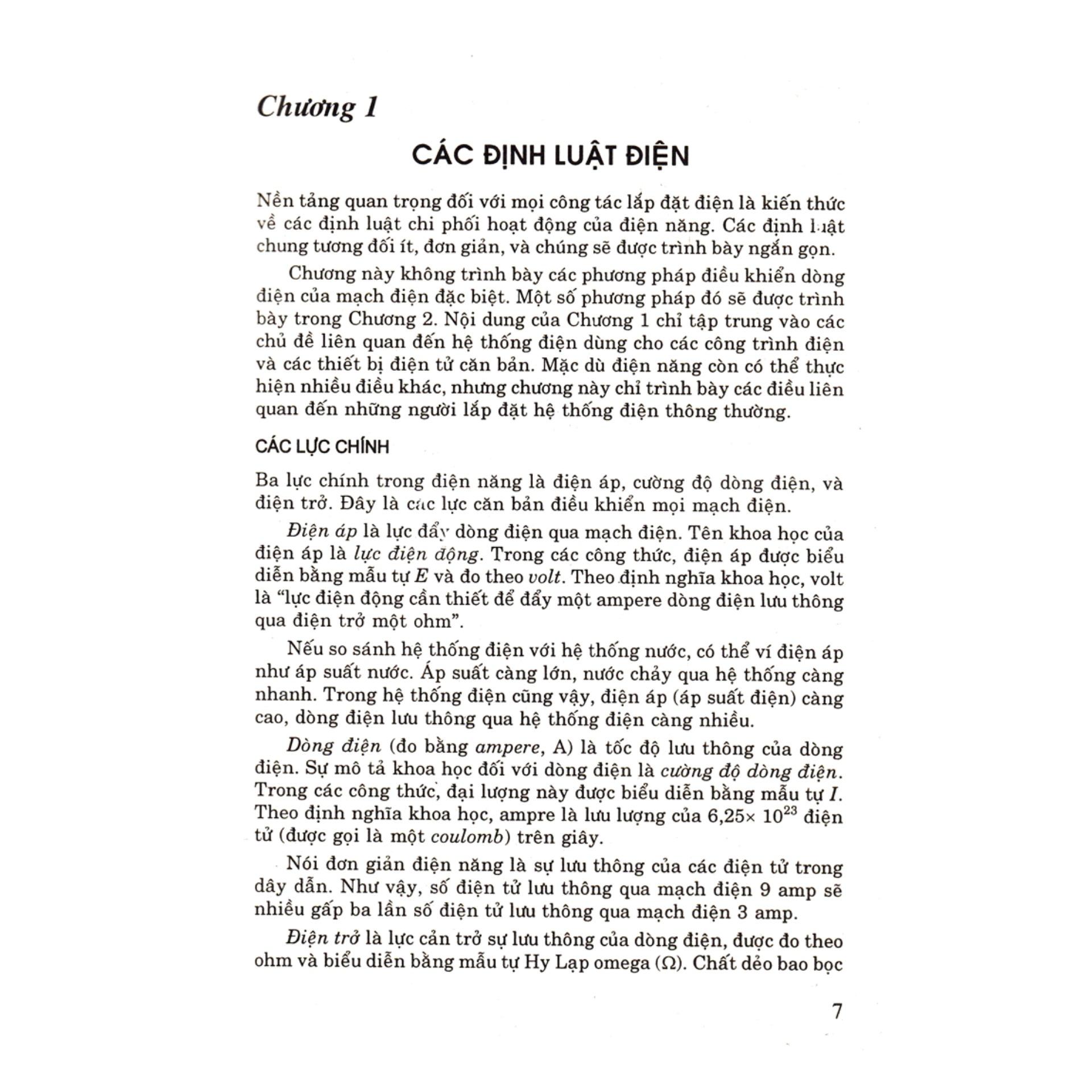 Sử dụng điện vốn dĩ là công việc nguy hiểm, đặc biệt là ở các điện áp dây thông dụng. Sử dụng điện thiếu thận trọng có thể dẫn đến bị điện giật hoặc hỏa hoạn. Do đó nhiều tiêu chuẩn điện đã được ban hành, thông dụng nhất là tiêu chuẩn quốc tế (IEC) và tiêu chuẩn điện quốc gia Hoa Kỳ (NEC). Cuốn sổ tay được viết theo tiêu chuẩn (NEC). Yêu cầu thực hành đầu tiên của NEC là mọi công việc phải được thực hiện một cách "rõ ràng và thuần thục". Nghĩa là người lắp đặt phải được cảnh báo và nhắc nhở, thông tin phải đầy đủ. Với tư cách là người lắp đặt trang thiết bị nguy hiểm, điều quan trọng là bạn phải duy trì sự chú tâm đối với những người vận hành hệ thống do bạn lắp đặt. Nhờ các quy định nghiệm ngặt, sự huấn luyện tốt và sự tuân thủ triệt để, các tai nạn điện đã giảm rõ rệt. Tuy nhiên, chúng vẫn còn xảy ra, và hầu hết những người làm việc trong lĩnh vực này một thời gian đều có thể nhớ lại những vụ hỏa hoạn nghiêm trọng bắt đầu từ một sai lầm trong việc thi công hệ thống dây điện. Cuốn sổ tay này bao gồm nhiều gợi ý về cách lắp đặt hệ thống điện, có thể giúp cho công việc của người lắp đặt điện dễ dàng, thú vị và tốt hơn. Sách bao gồm 15 Chương Chương 1: Cách định luật điện Chương 2: Các mạch điện và linh kiện điện tử Chương 3: Bản vẽ điện Chương 4: Động cơ, bộ điều khiển và mạch điện Chương 5: Máy phát điện Chương 6: Sự truyền động công suất cơ học Chương 7: Phân phối điện Chương 8: Nối đất Chương 9: Công tắc tơ và rờ le Chương 10: Kỹ thuật hàn Chương 11: Máy biến áp Chương 12: Hệ thống điện Chương 13: Hệ thống truyền thông Chương 14: Hệ thống điện trong các vị trí nguy hiểm Chương 15: dụng cụ và sự an toàn