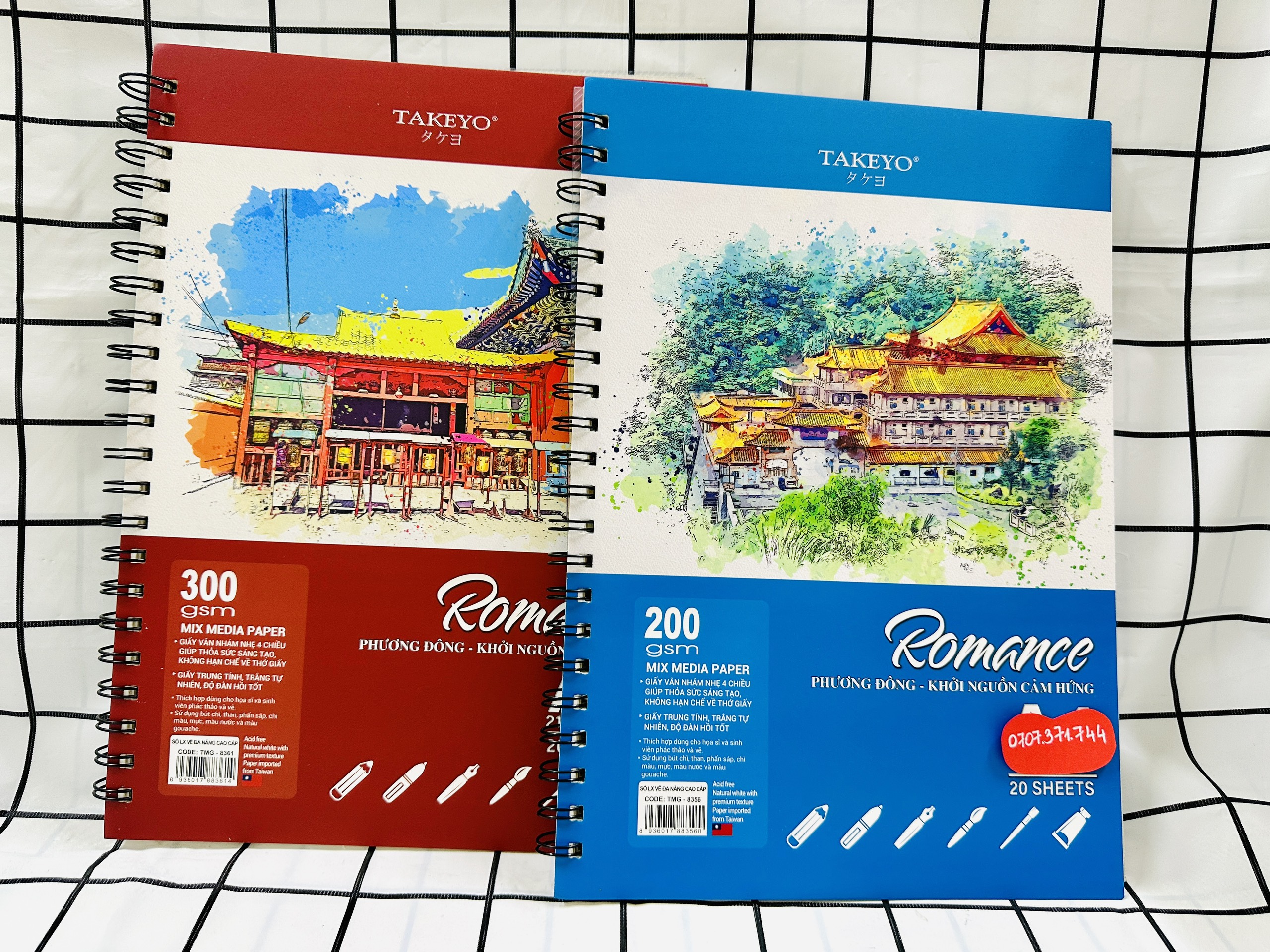 ✨Sổ Vẽ Lò Xo Đa Năng Cao Cấp 20 Tờ Size A4-A5 Định Lượng Giấy 200GMS Và 300GMS Bìa Nhựa Chống Thấm Nước ROMACE TAKEYO, Sổ Vẽ Chuyên Dùng Cho Màu Nước