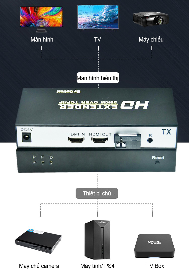 Hướng dẫn lắp đặt Bộ kéo dài HDMI qua cáp quang 20Km tích hợp USB