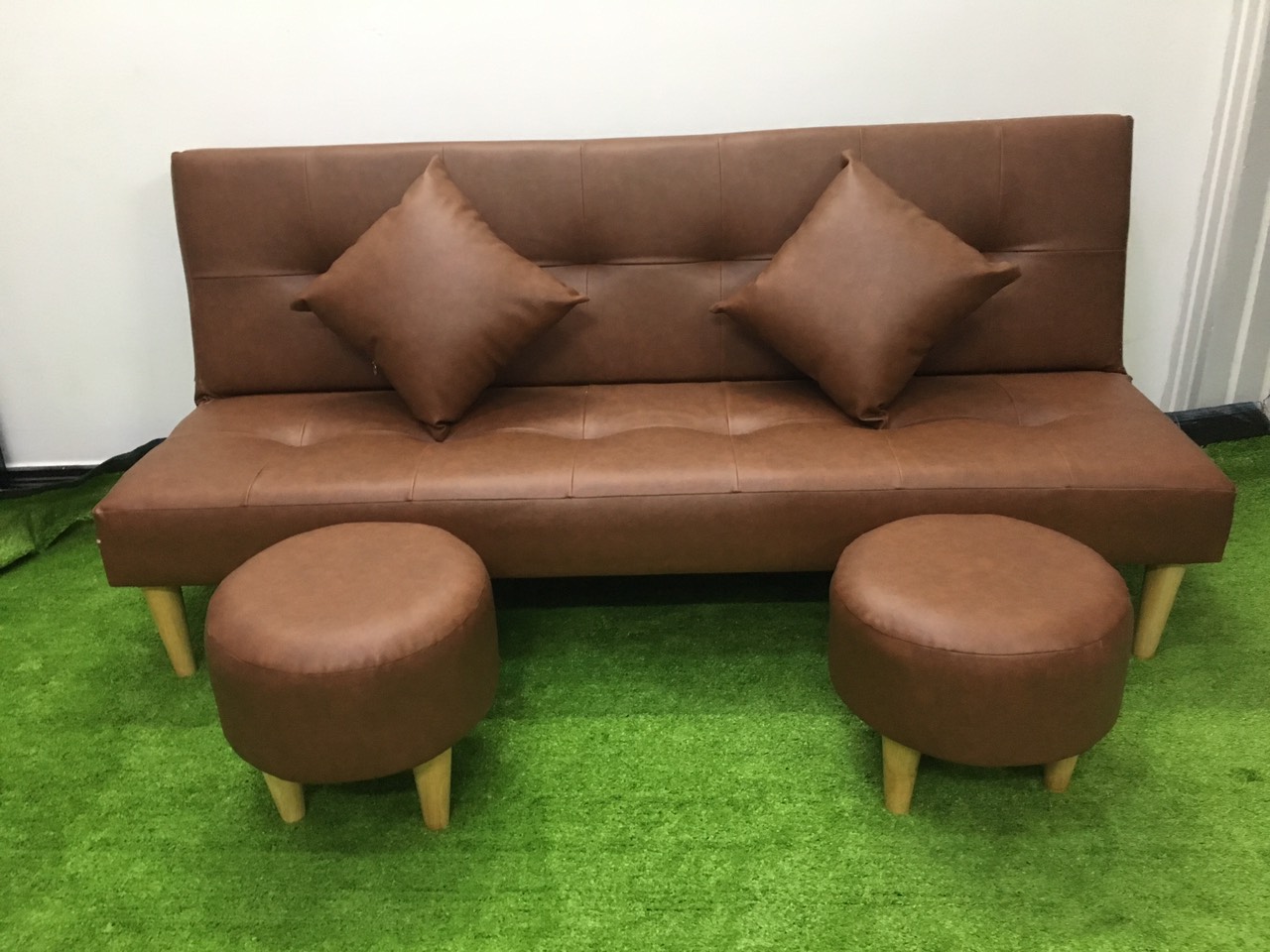 ✨Sofa bed, sofa giường màu nâu và 2 đôn tròn SB16