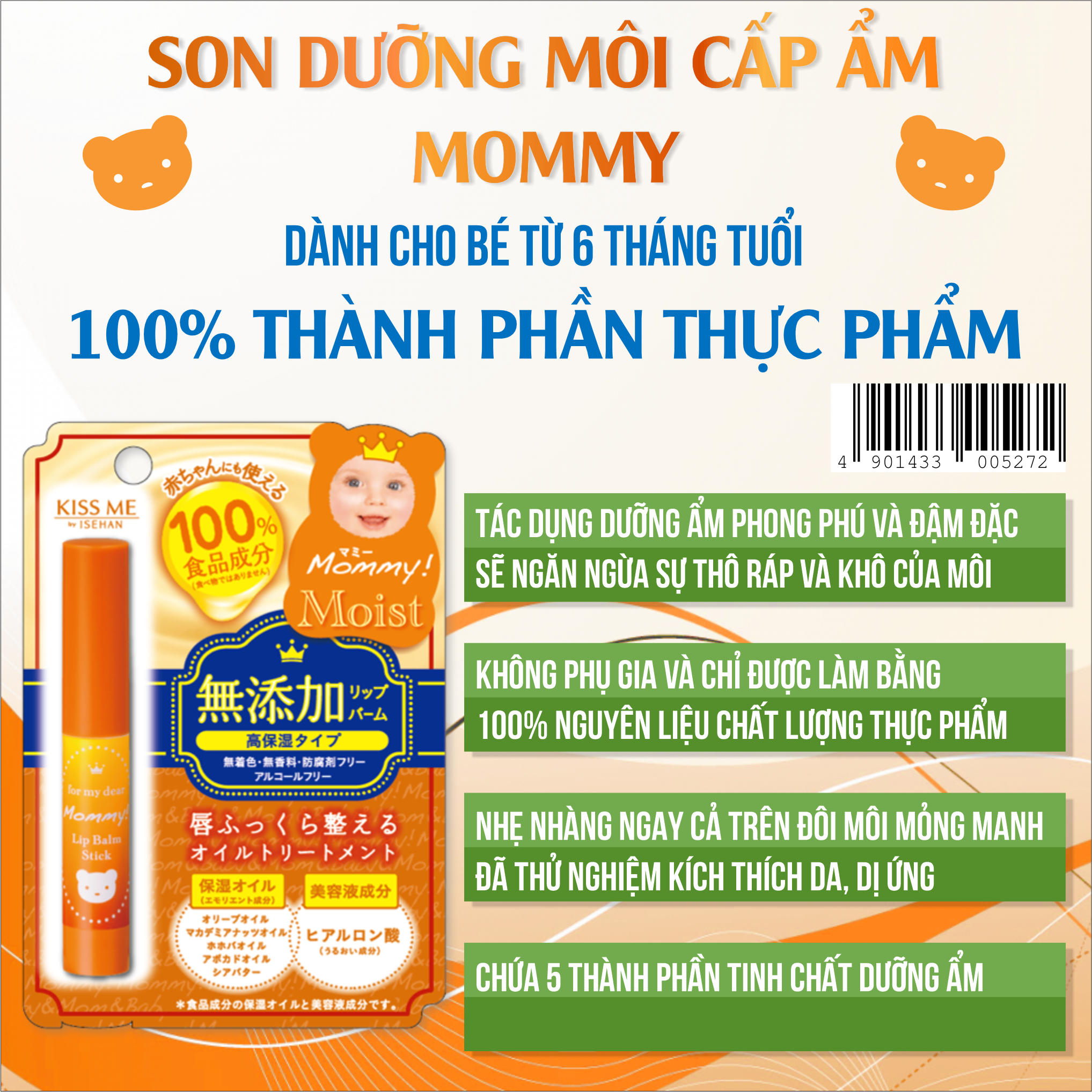 ✨Son Dưỡng Chống Nứt Nẻ Môi Dành Cho Bé Từ 06 Tháng Tuổi Và Da Nhạy Cảm Kissme Mommy Lips (2.5 G)