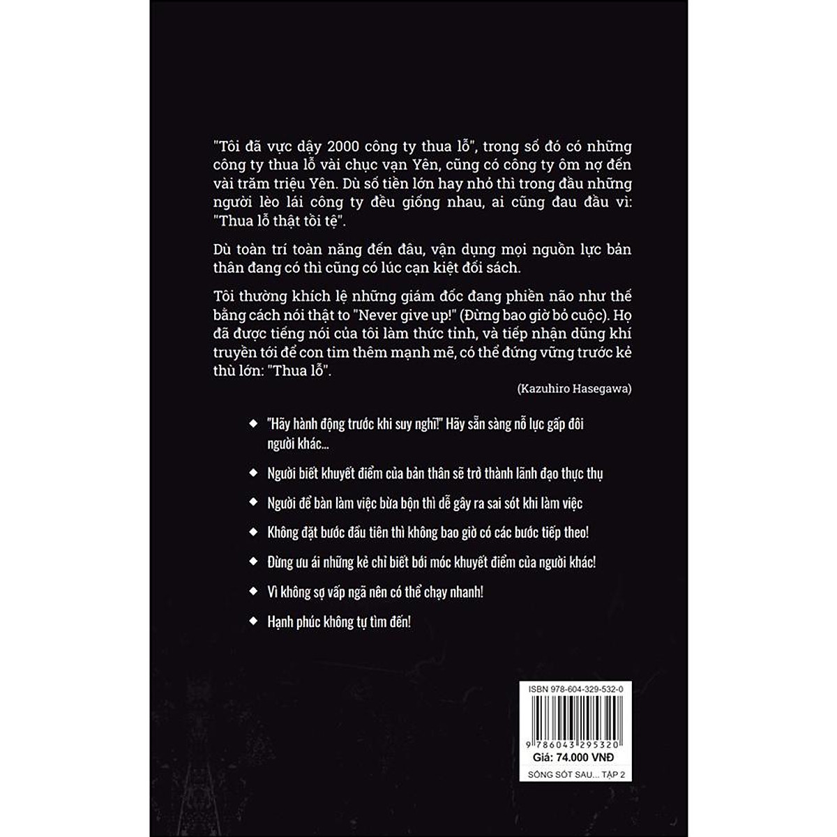 “Nếu bộ sách "Sống sót sau những cú shock kinh doanh” có thể trợ giúp được bạn, đấy là hạnh phúc tột cùng của tôi” (Kazuhiro Hasegawa)