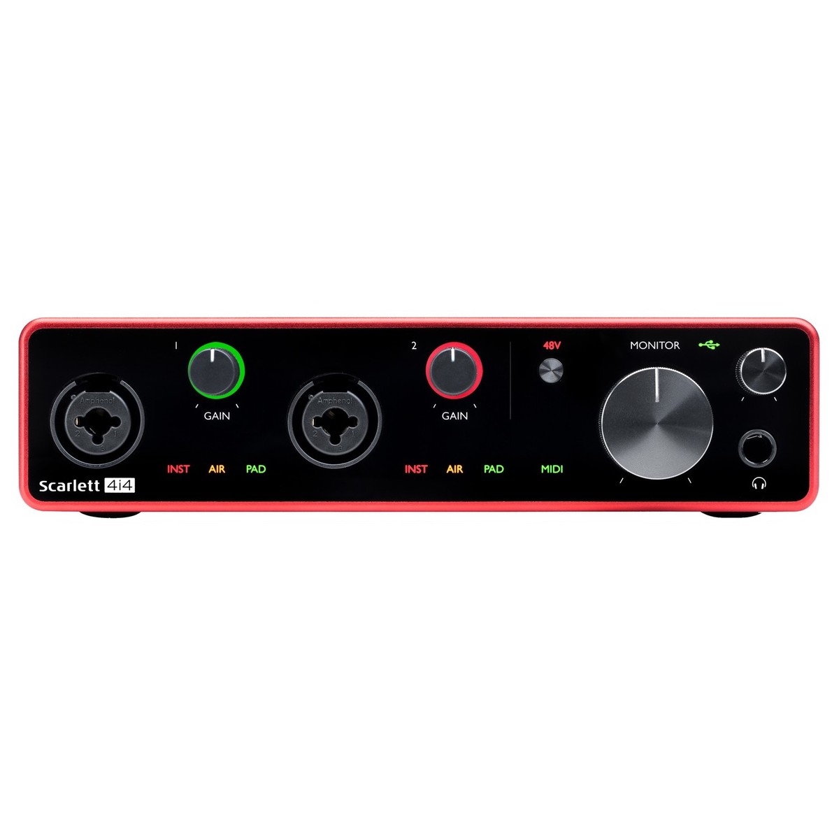 - Sách thông tin sản phẩm. THÔNG SỐ KỸ THUẬT ConnectivityUSB Type-CProtocolUSB 2.0Form FactorDesktopSimultaneous I/O4 x 4A/D Resolution24 bit/192kHzNumber of Preamps2Number of Pads2Phantom PowerYESInstrument Inputs2Line Inputs4Analog Outputs4Headphone Outputs2Main/Alt Speaker SwitchingYESTalkbackYESLoopbackYESMIDI I/OYESBus PoweredNOIncluded PSUYES