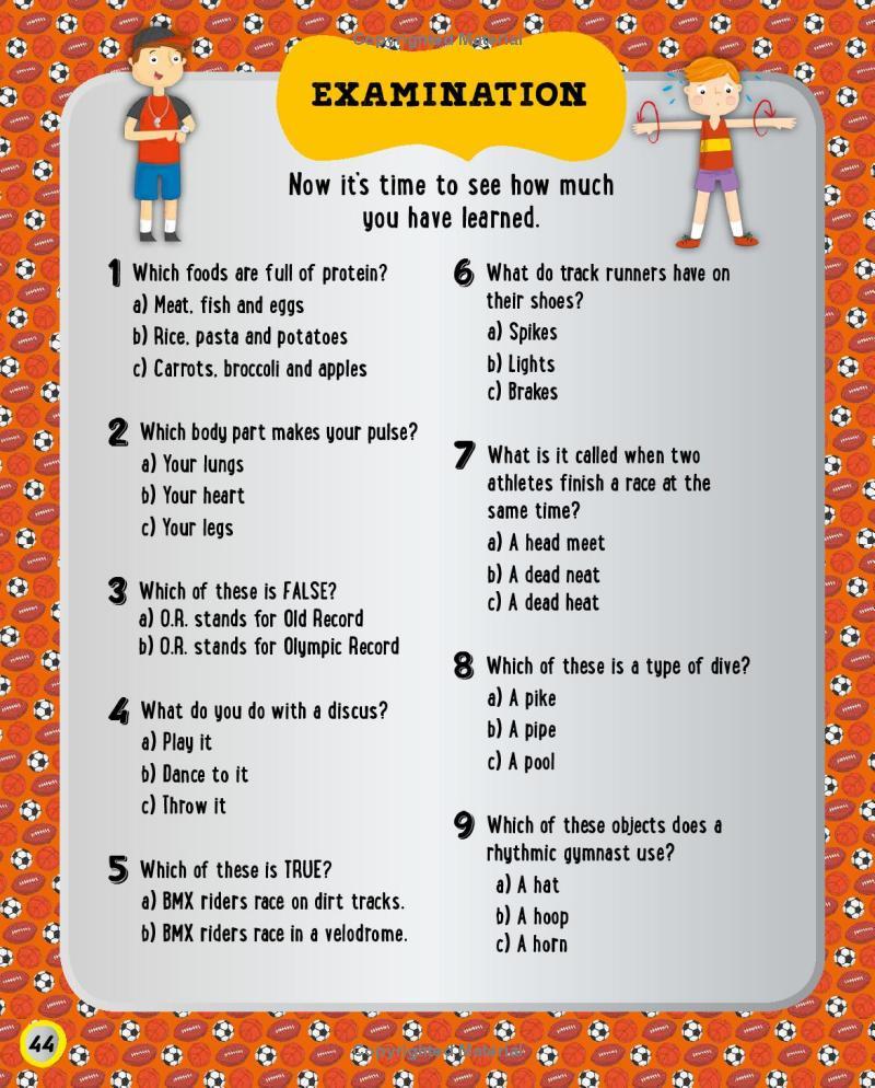 Simple tasks will test your skills and reinforce the information you read in the book. Do you know where your Achilles heel is? Can you check your pulse? How do you train and prepare for an important competition? Take a look inside to find out!