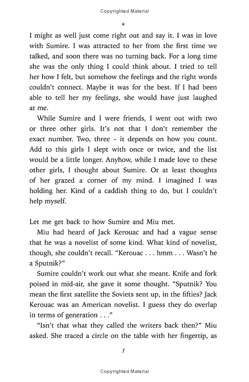 Sumire is in love with a woman seventeen years her senior. But whereas Miu is glamorous and successful, Sumire is an aspiring writer who dresses in an oversized second-hand coat and heavy boots like a character in a Kerouac novel.