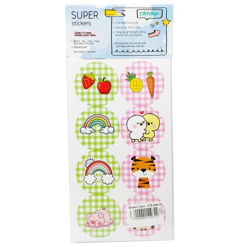 Mua tại TiktokSticker Trang Trí - Teenage CTE-040 Bộ 5 tờ sticker trang trí gồm nhiều chiếc sticker nhỏ dễ thương được cắt xén sẵn giúp bạn dễ dàng sử dụng Bộ sticker được làm từ chất liệu giấy Decal nhiều màu sắc, hình ảnh được in sắc nét không phai rất hài hòa. Từng chất liệu, màu sắc, kiểu dáng được cân nhắc kỹ lưỡng để tạo ra những sản phẩm đạt được yêu cầu cao về thẩm mỹ cũng như về chất lượng. Keo dính chắc chắn, độ bền cao, tạo sự tiện lợi cho việc trang trí. Mỗi sticker được thiết kế khác nhau, cho bạn thỏa sức trang trí và sáng tạo những sản phẩm thủ công của riêng mình. Bộ sticker dễ thương này có thể dùng để làm thiệp handmade, trang trí sổ, dán lên hộp bút, điện thoại, máy tính, trang trí góc học tập và làm việc