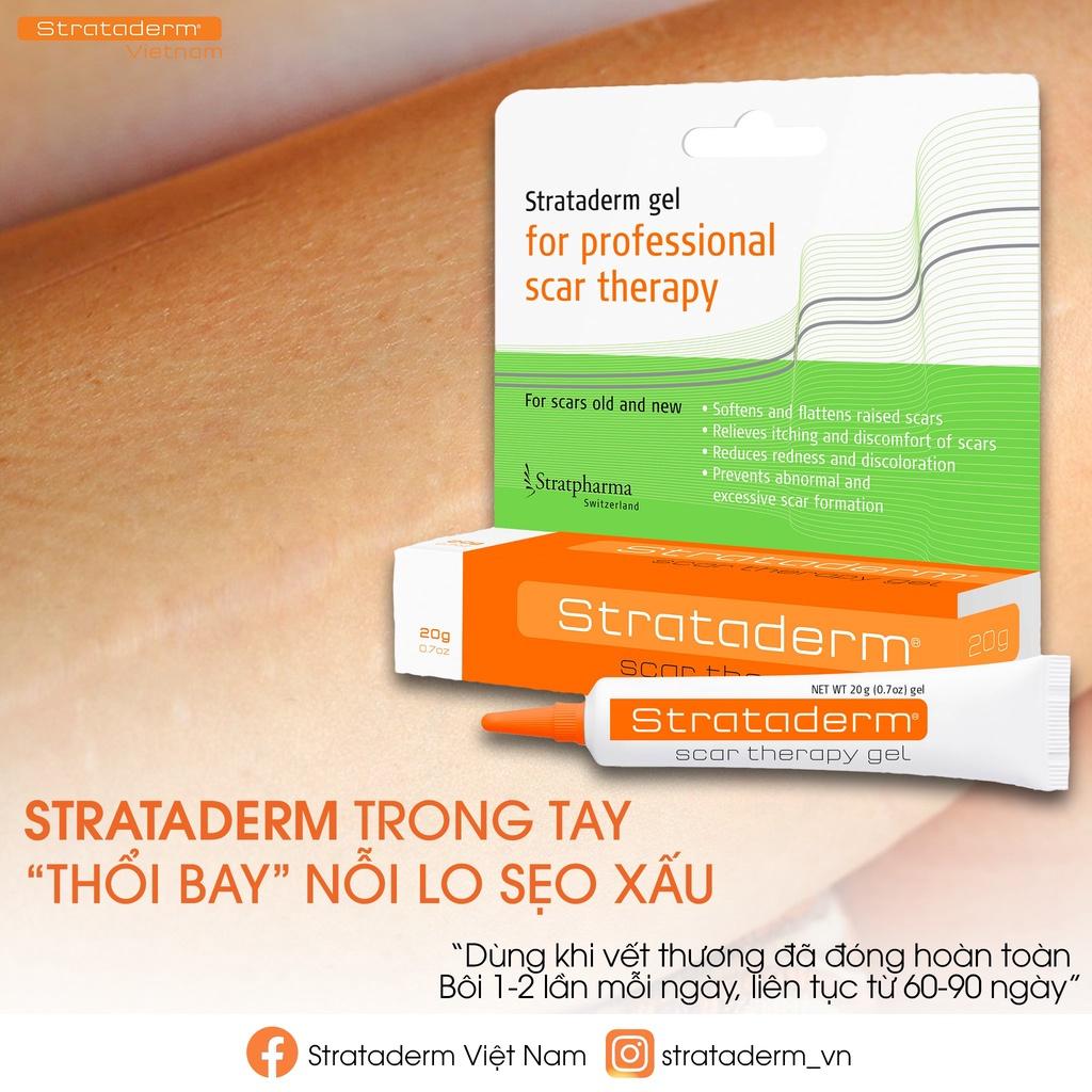 - Strataderm là sản phẩm hỗ trợ tốt đối với các vết sẹo lồi, sẹo lâu năm được nhiều chuyên gia da liễu khuyên dùng. Sản phẩm được sản xuất theo công nghệ mới từ công ty dược nổi tiếng Stratapharma Thụy Sĩ, kết cấu dạng gel không nhờn dính trên da.