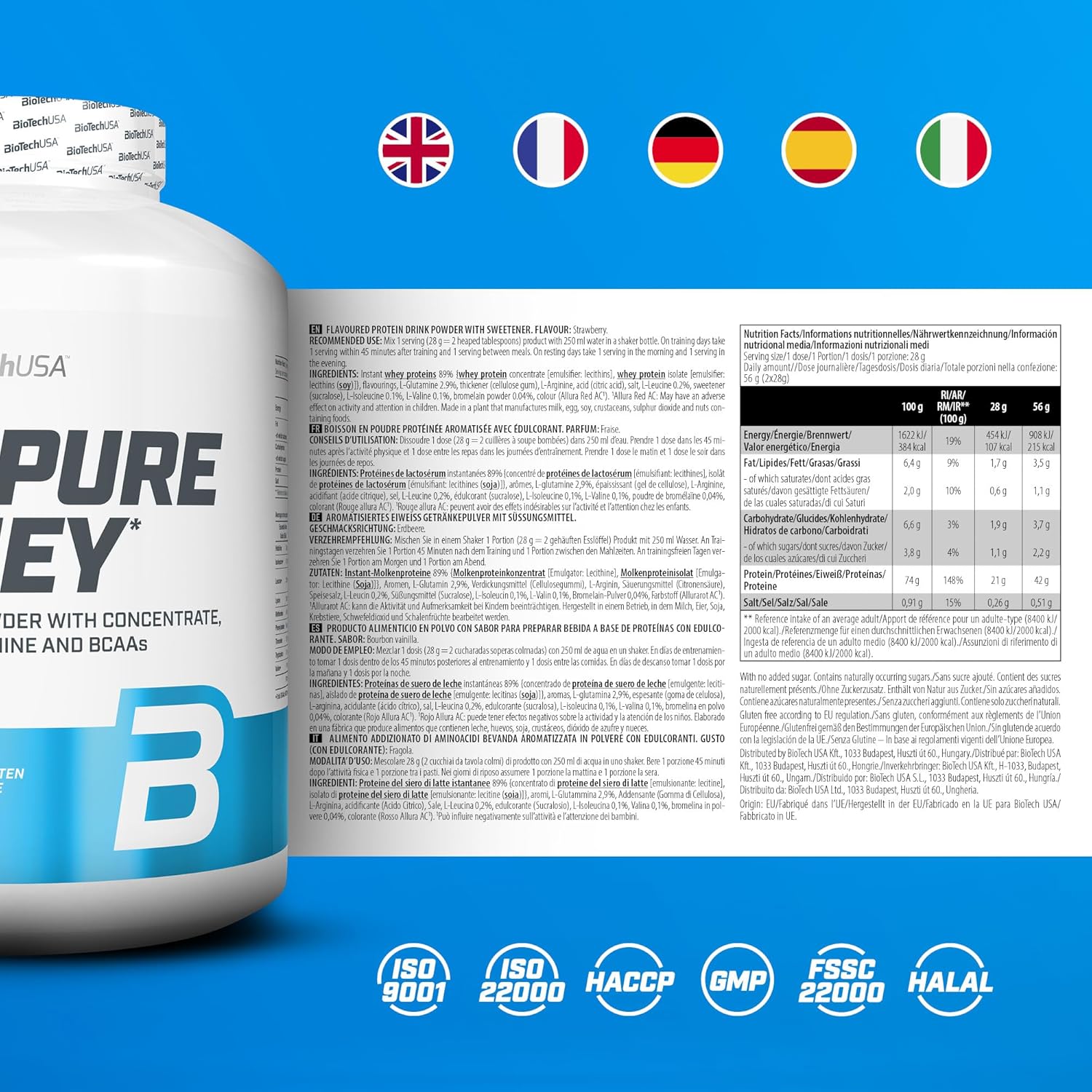 ✨Sữa Bột BioTechUSA 100% Pure Whey 2.27KG (81 Lần Dùng),Hỗ trợ Phục Hồi và Phát triển Cơ Bắp, Bổ Sung 22G Protein, BCAA và Glutamine