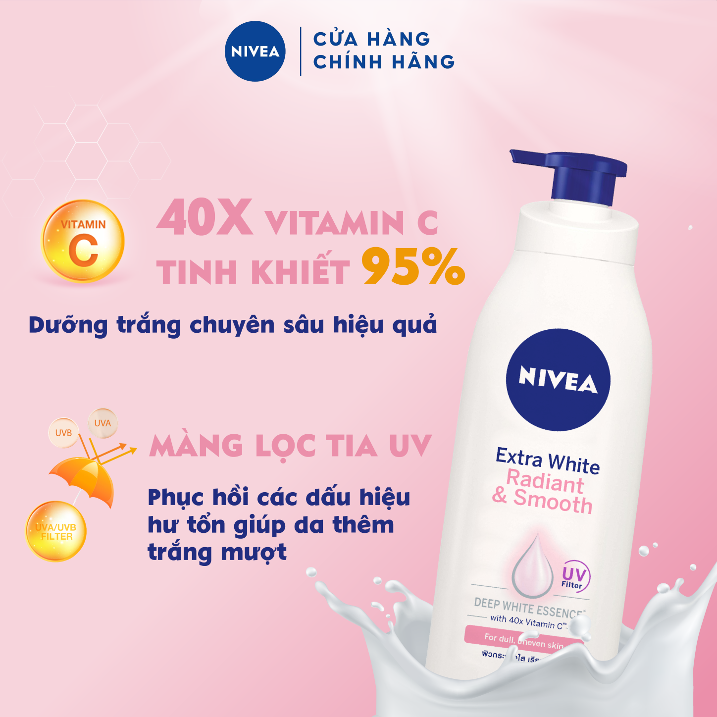 Sữa Dưỡng Thể NIVEA Extra Bright Dưỡng Sáng Da | Mịn Da (350 ml) CÔNG DỤNG - Dưỡng da sáng mịn từ bên trong, màng lọc tia UV giúp bảo vệ da khỏi tác hại