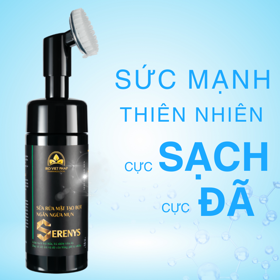 Sữa rửa mặt dạng bọt tuyết Serenys , làm sạch sâu ngăn ngừa mụn là sản phẩm chăm sóc da mụn từ tinh dầu Tràm trà hoàn toàn từ thiên nhiên. Sản phẩm không chứa các hóa chất gây hại cho da như hương liệu, phẩm màu, cồn, dầu khoáng, paraben. Có thể sử dụng hàng ngày để giúp da luôn sạch khỏe, trắng sáng và mịn màng.