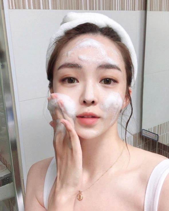 - Cho một lượng sữa rửa mặt vừa đủ ra lòng bàn tay và cho thêm chút nước để tạo bọt sau đó massage nhẹ nhàng da mặt theo chiều kim đồng hồ.