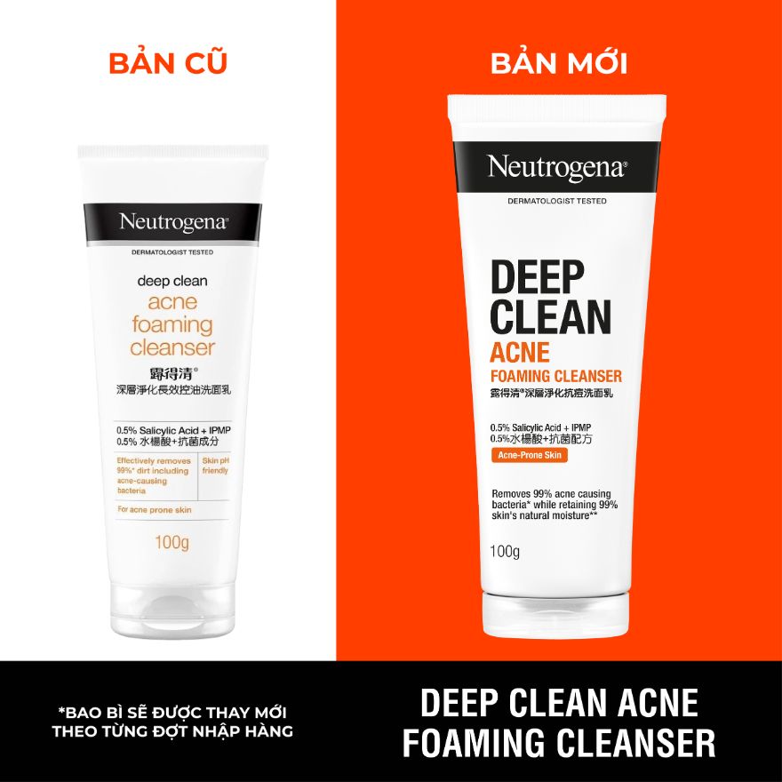 Sữa rửa mặt Neutrogena Deep Clean Brightening Foaming giúp da trắng sáng đều màu (40,100g/ tube)