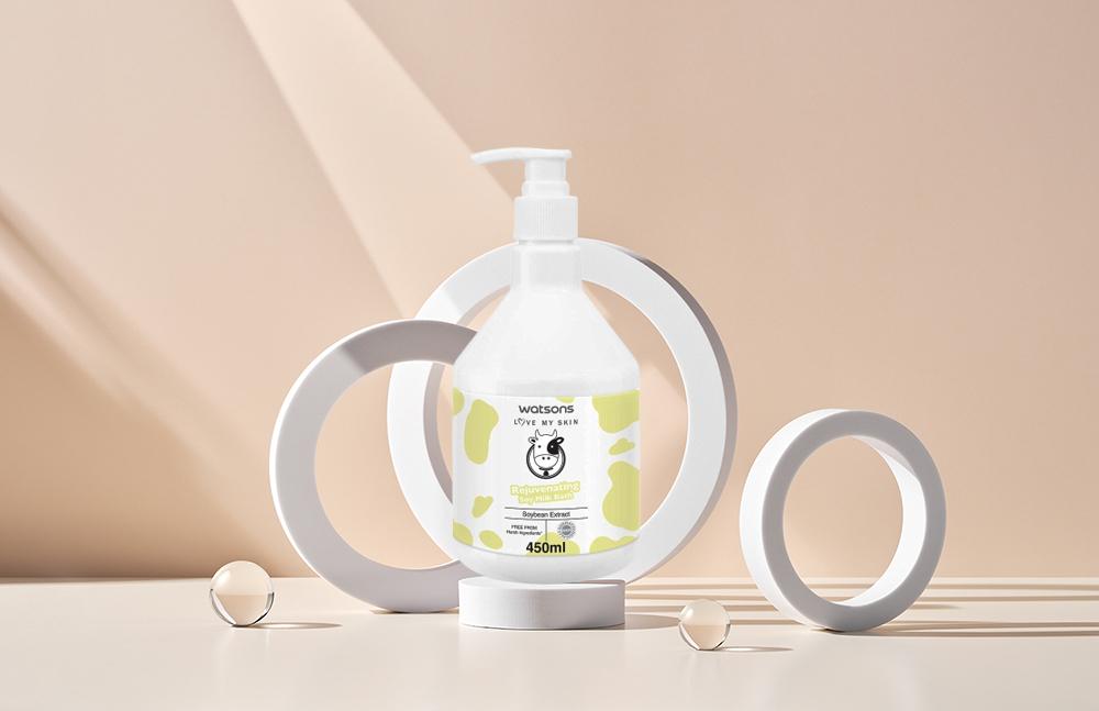 - Làm ướt người, cho một lượng vừa Watsons Rejuvenating Soy Milk Bath vào bông tắm và thoa đều lên da.
