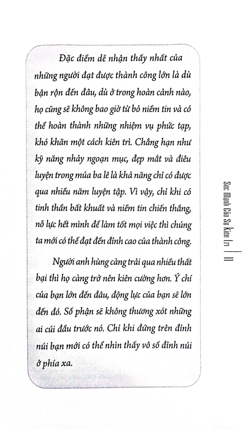 Martin Luther King từng nói: “Chúng ta phải chấp nhận sự thất vọng vì hữu hạn, nhưng chúng ta không bao giờ được mất hy vọng, vì nó là vô hạn”. Không có con đường nào bằng phẳng trong cuộc sống và chúng ta không thể ngừng tiến về phía trước, vì tương lai còn ở phía trước. Những người hạnh phúc không nhất thiết là những người thành công nhất. Họ cũng từng trải qua những thất bại, nhưng điểm khác biệt là họ luôn tràn đầy hy vọng.