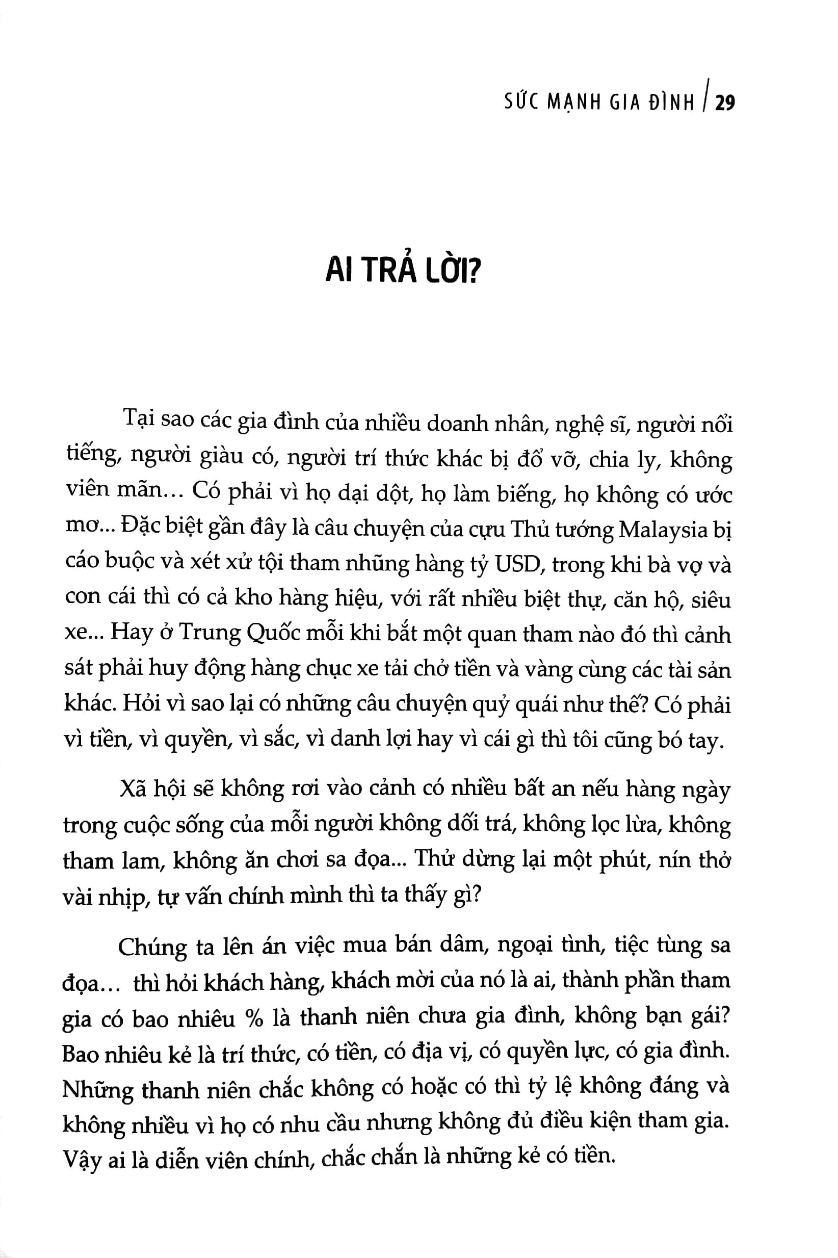 Tôi viết cuốn sách này không muốn khoe mẽ hay tranh cãi cùng ai cả. Tôi chỉ cần chia sẻ cùng những ai đang chuẩn bị cho vai trò làm cha, làm chồng, làm chủ gia đình. Tôi mong sao có thể đồng cảm, thấu hiểu, lắng nghe, ủng hộ cho bất cứ ai muốn xây dựng, cần bảo vệ ước mơ có một gia đình một vợ một chồng cùng các con sống như ý mình: