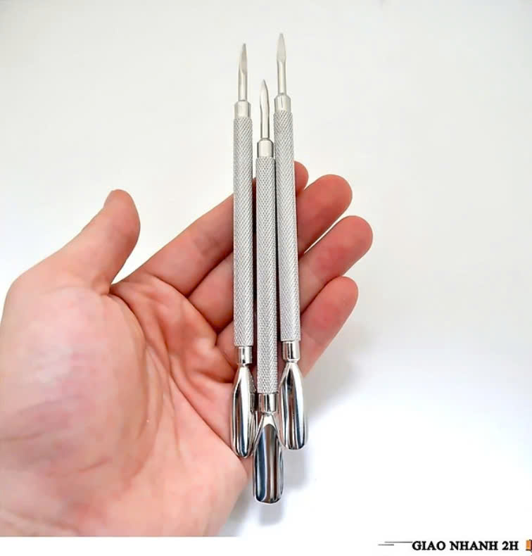 Mua tại TiktokCây đẩy da chết (sủi móng) - lấy khóe móng loại inox 304 chuyên dụng Cây đẩy da chết (sủi móng) là dụng cụ được dùng để đẩy da, giúp lấy đi tế bào da chết làm sạch bề mặt móng và tạo độ tròn khóe săn chắc cho viền móng, hỗ trợ quá trình nhặt da. Đầu còn lại của sản phẩm là cây lấy khóe móng có 2 size lớn, nhỏ giúp phù hợp với tất cả phom móng. Sản phẩm rất phù hợp trong toàn bộ quá trình nhặt da vệ sinh móng. Thông tin sản phẩm Cây đẩy da