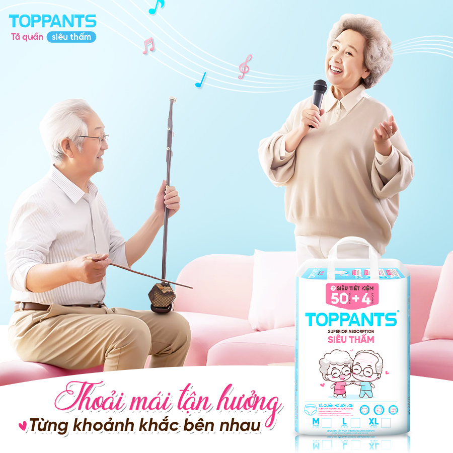 ✨Tã/Bỉm Quần người lớn TOPPANTS Siêu Thấm, Chống Trào, Kháng Khuẩn Size M/L/XL (54 Miếng)