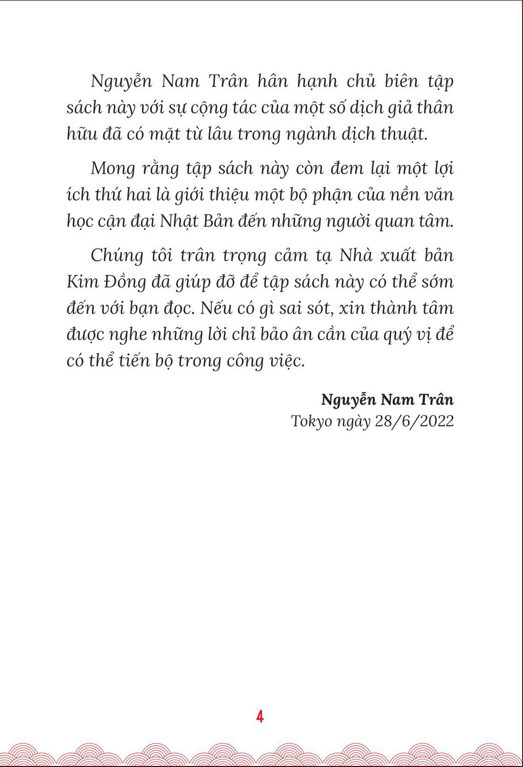 Bộ sách Tác giả kinh điển Nhật Bản - Truyện hay cho tuổi học đường gồm bốn tập, được dịch giả Nguyễn Nam Trân dành nhiều tâm huyết cho việc dịch thuật trong nhiều năm, biên soạn, và mời các đồng nghiệp cộng tác, để dành tặng bạn đọc nhỏ tuổi Việt Nam.