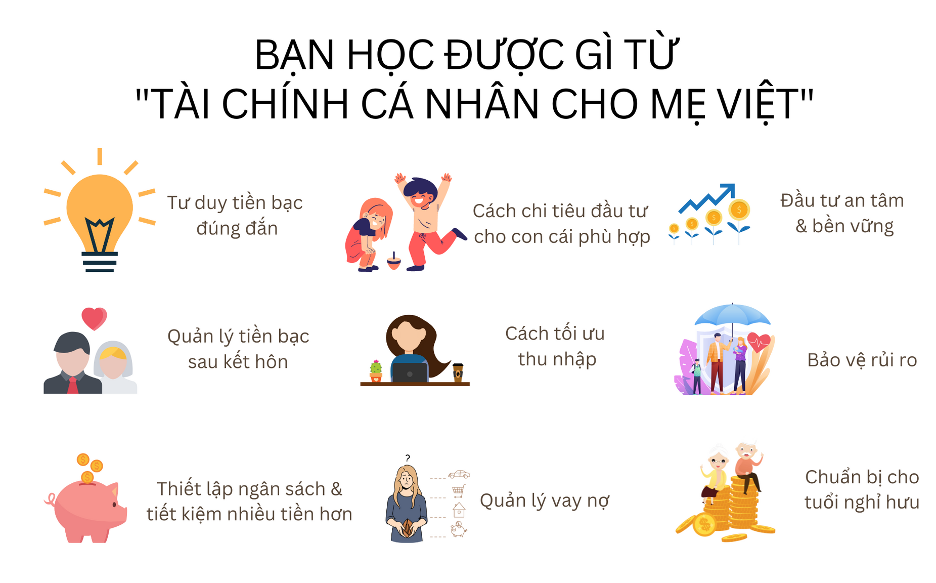 Mình quyết định chia sẻ những kiến thức mình có, những bài học mình học được sau những sai lầm của bản thân đến mọi người. Mình đã tư vấn cho rất nhiều chị em cách quản lý tài chính, cách lập kế hoạch tài chính và cách thực thi để có thể xây dựng nền tảng tài chính gia đình an tâm và bền vững.