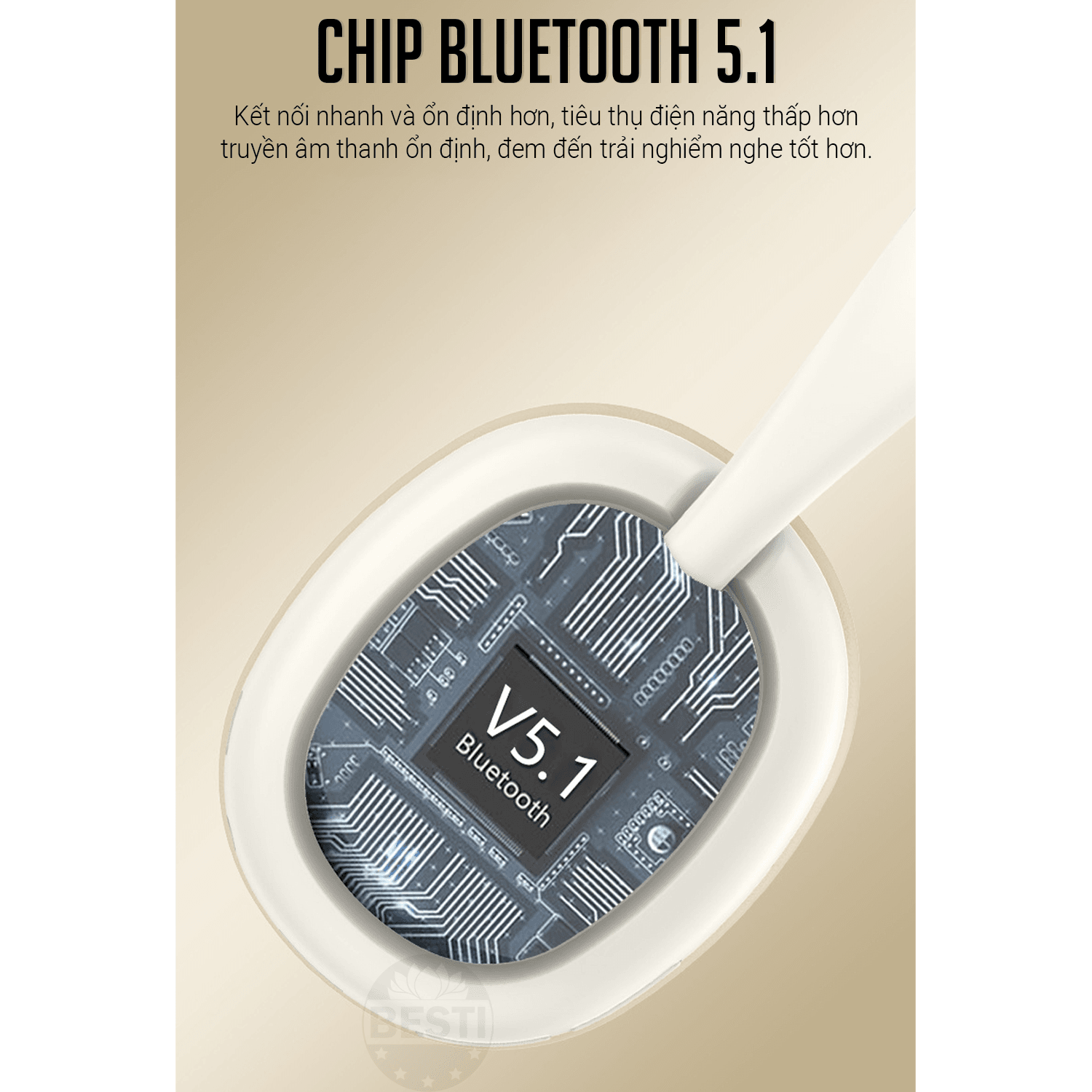 - Tai nghe chụp tai Bluetooth Besti sử dụng kết nối Bluetooth 5.1 mới nhất hiện nay cho trải nghiệm tốt hơn hẳn so với các chuẩn kết nối cũ.