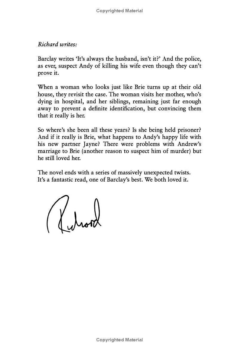 ‘[Exhibits] Barclay’s remarkable strengths in plotting and characterisation. Perhaps only John Grisham is his equal in creating show-stealing supporting characters’ SUNDAY TIMES