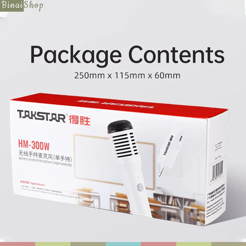 ✨Takstar HM-300W - Micro Cầm Tay UHF, Pham Vi Thu 40m Dùng Cho Hát Karaoke, Giảng Dạy, Hướng Dẫn Viên - Hàng chính hãng